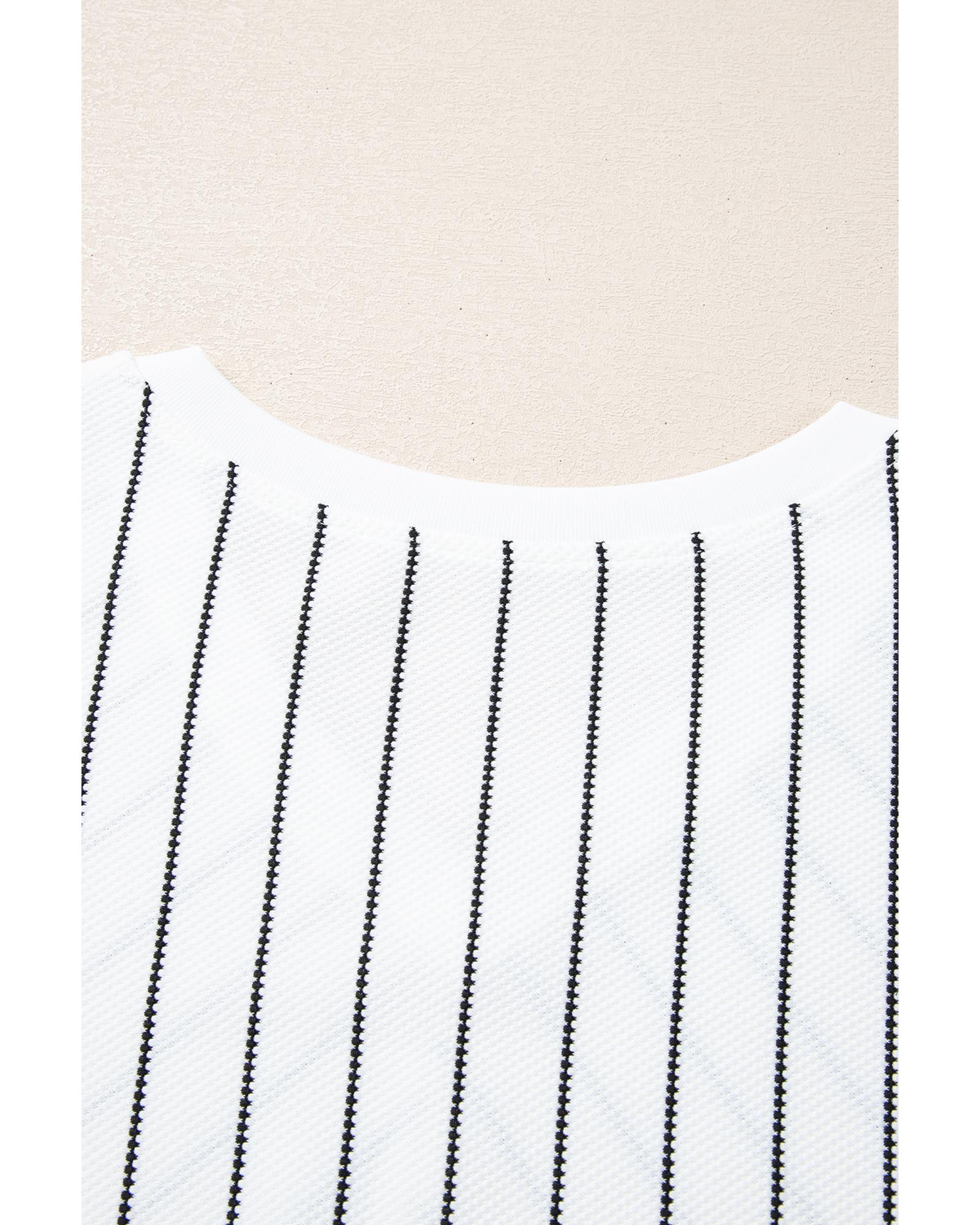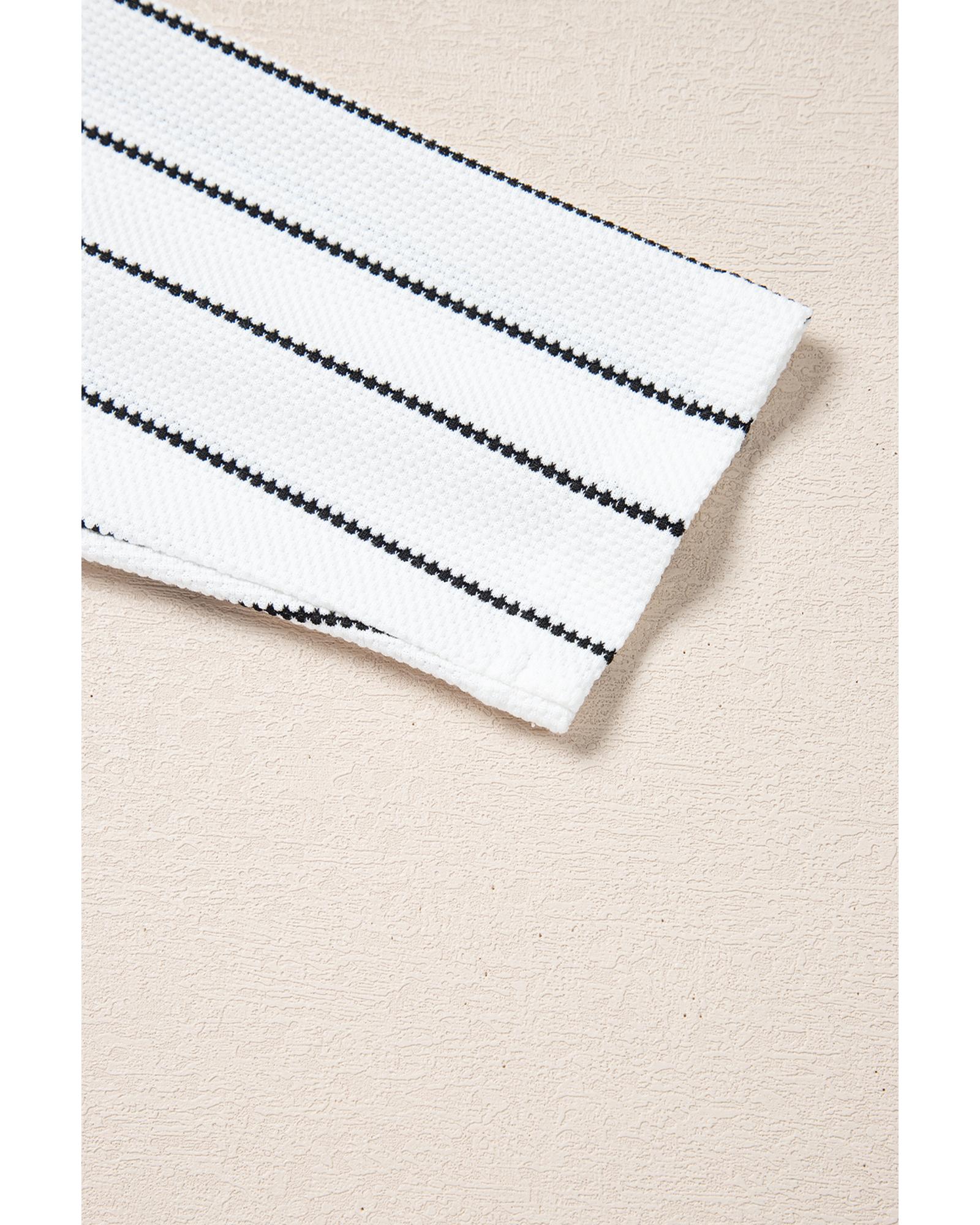 - Black Stripe Chevron Striped V Neck Long Sleeve Casual Top