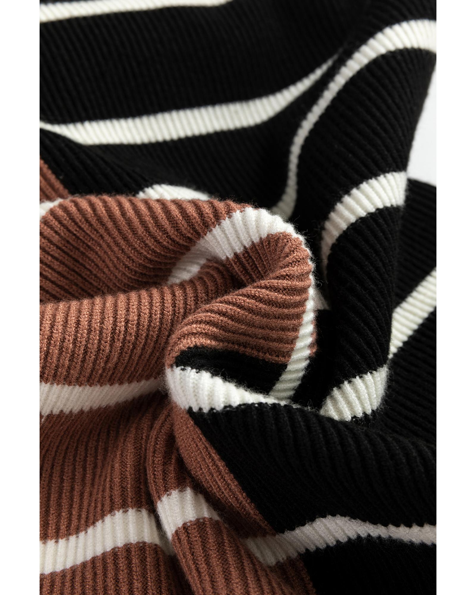Black Stripe Color Block Quarter Zip Collar Short Sleeve Sweater Dress – M