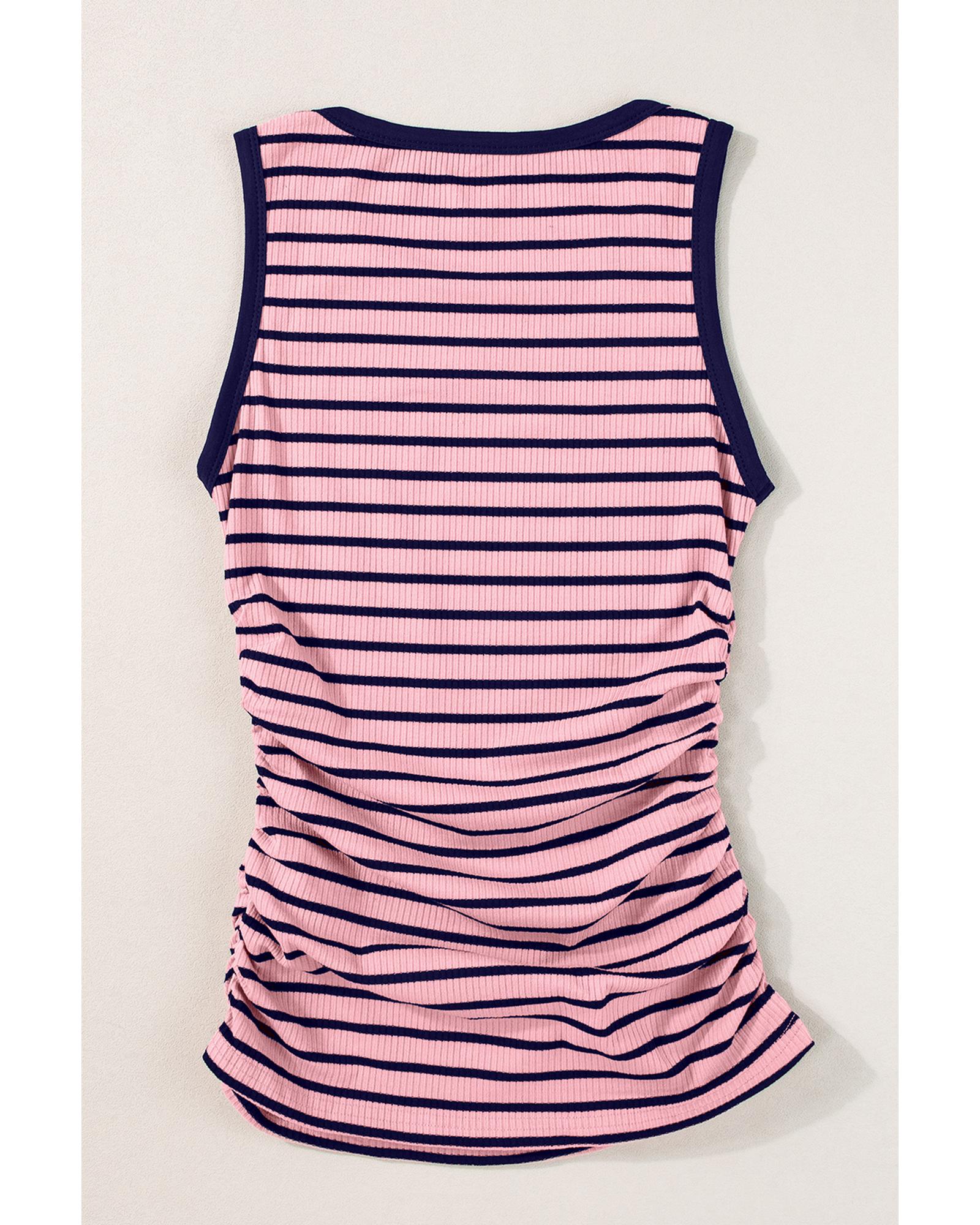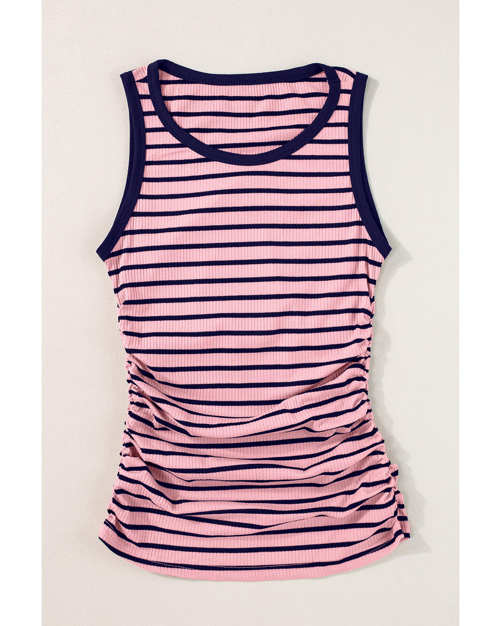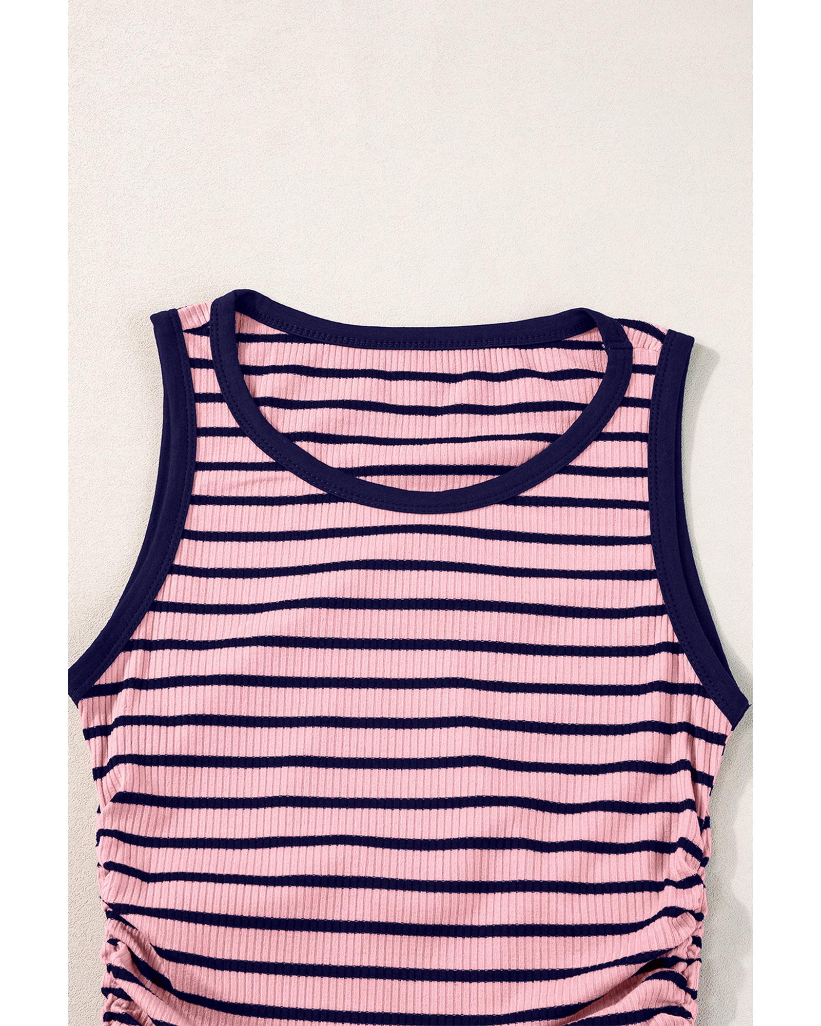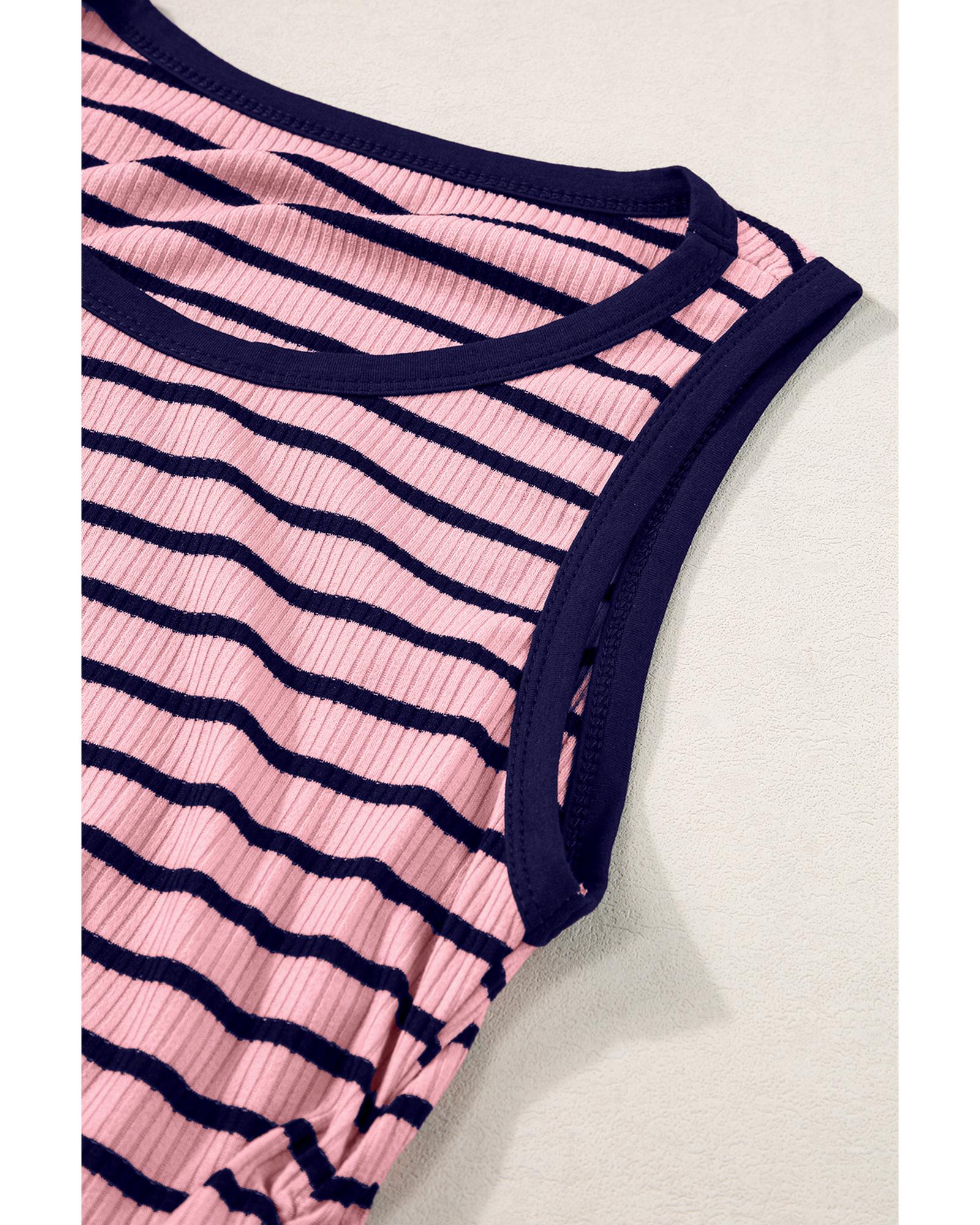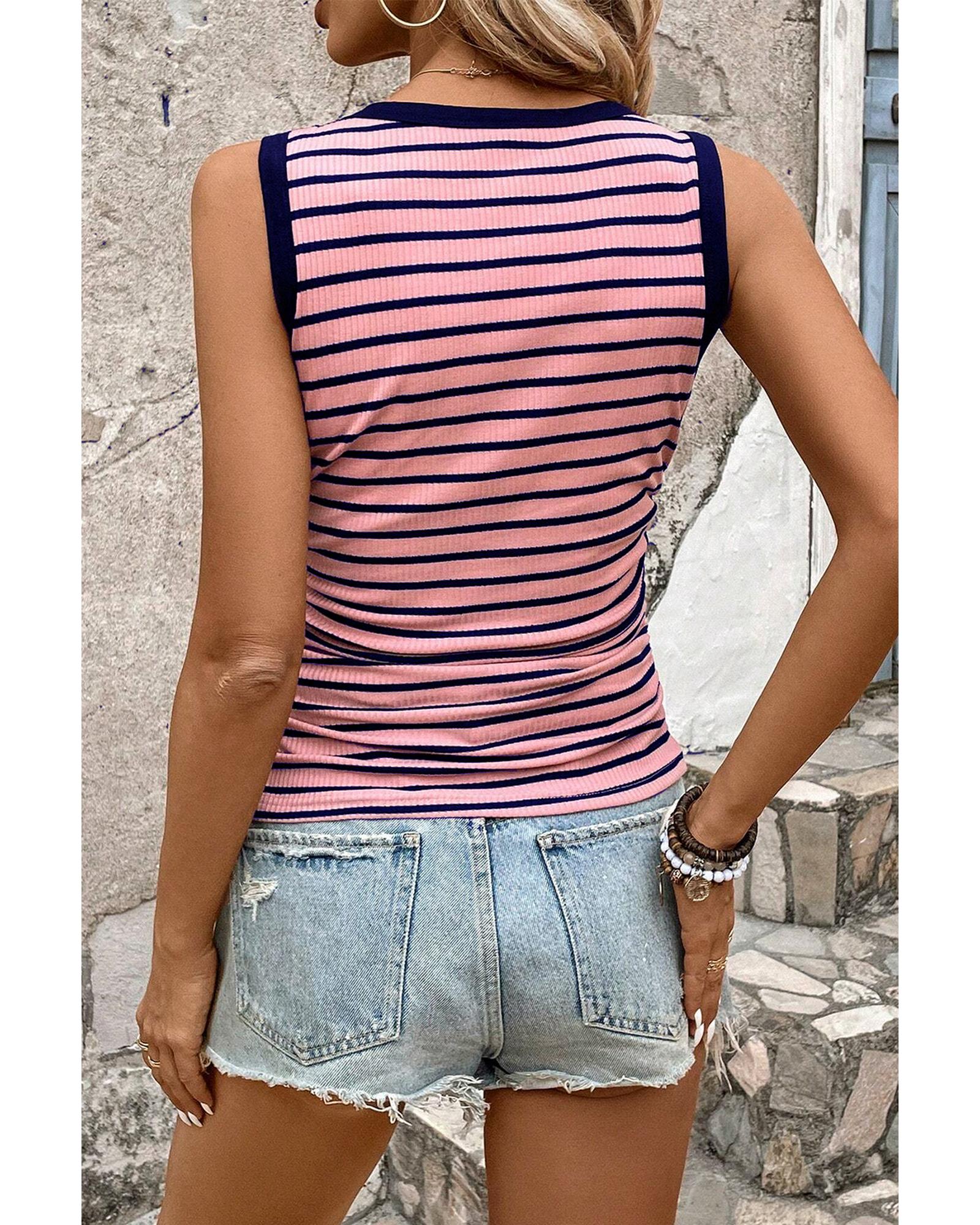 Black Stripe Contrast Round Neck Sleeveless Slim Top – XL