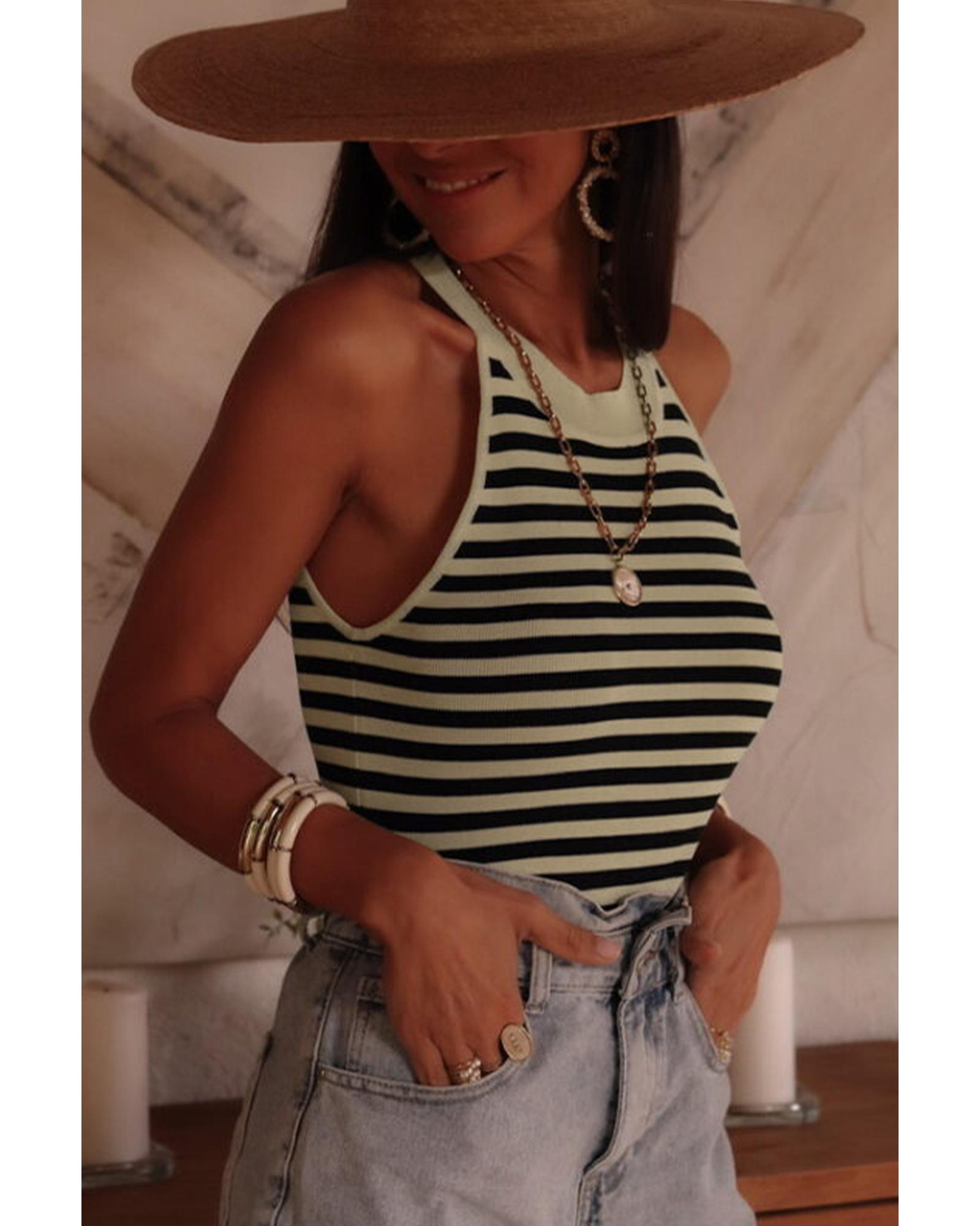 - Knitted vest with a timeless striped pattern