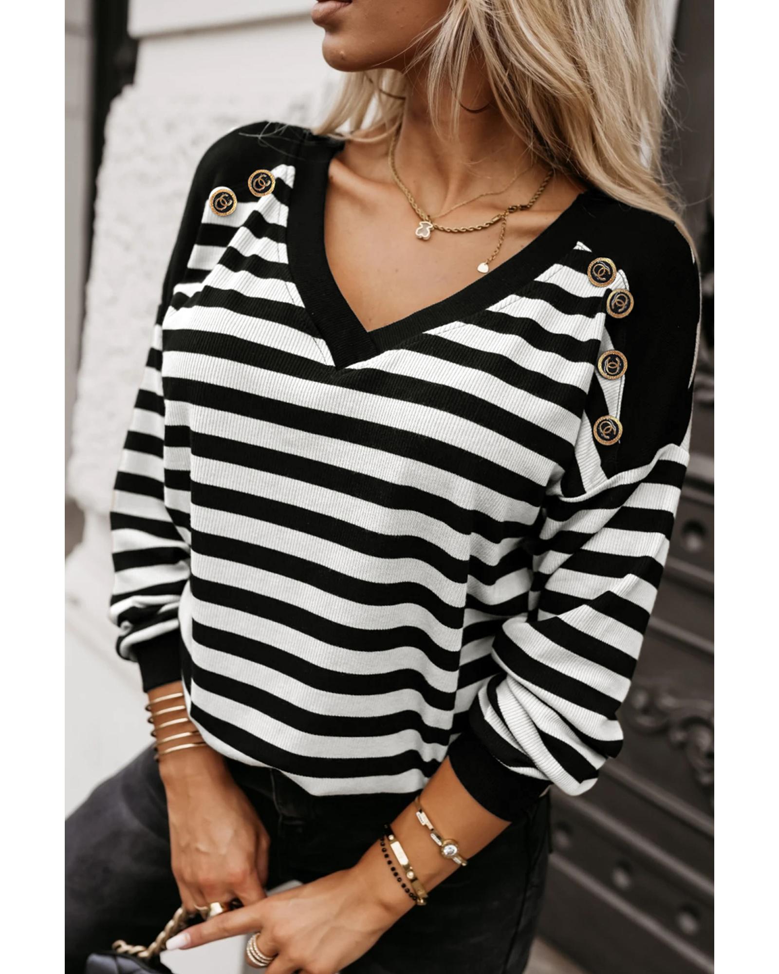 Black Stripe Chevron Striped V Neck Long Sleeve Casual Top - L Original price was: $62.99.Current price is: $33.99.