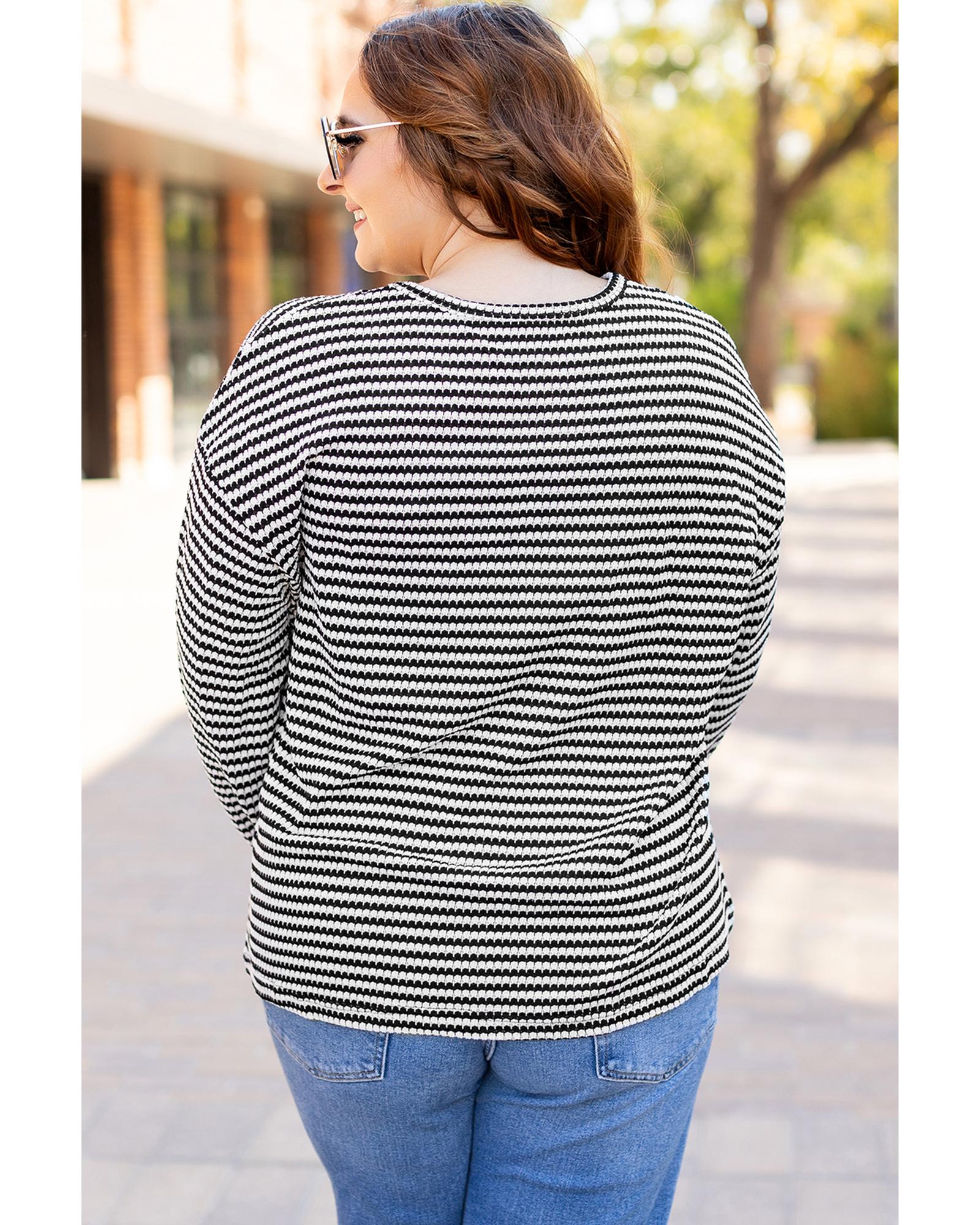 Black Stripe Drop Shoulder Puff Long Sleeve O Neck Plus Size T Shirt – 4X