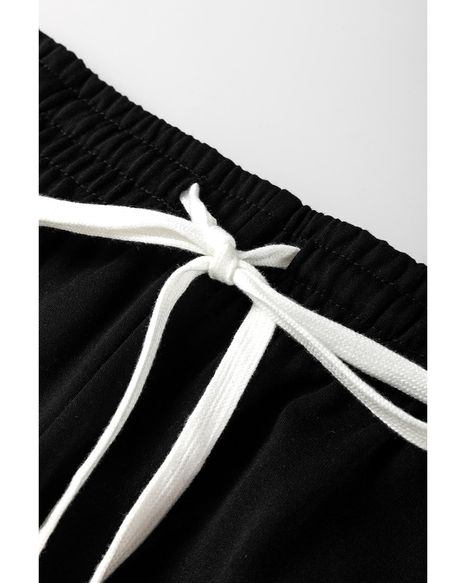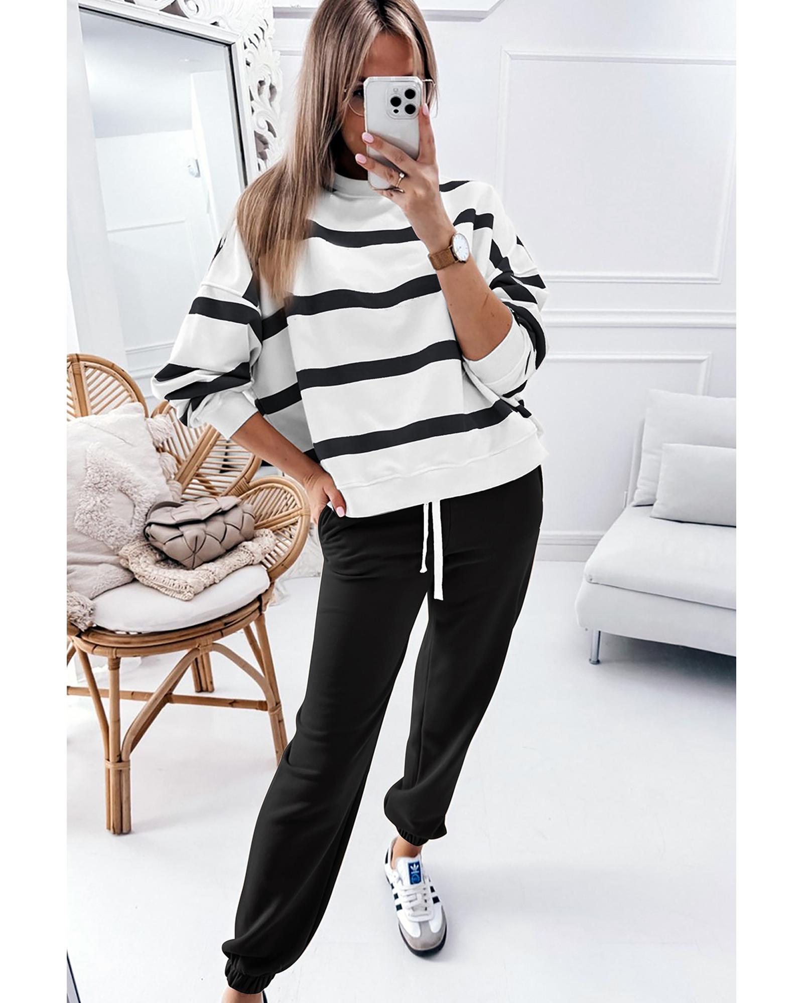 Black Stripe Drop Shoulder Pullover and Jogger Pants Set – M