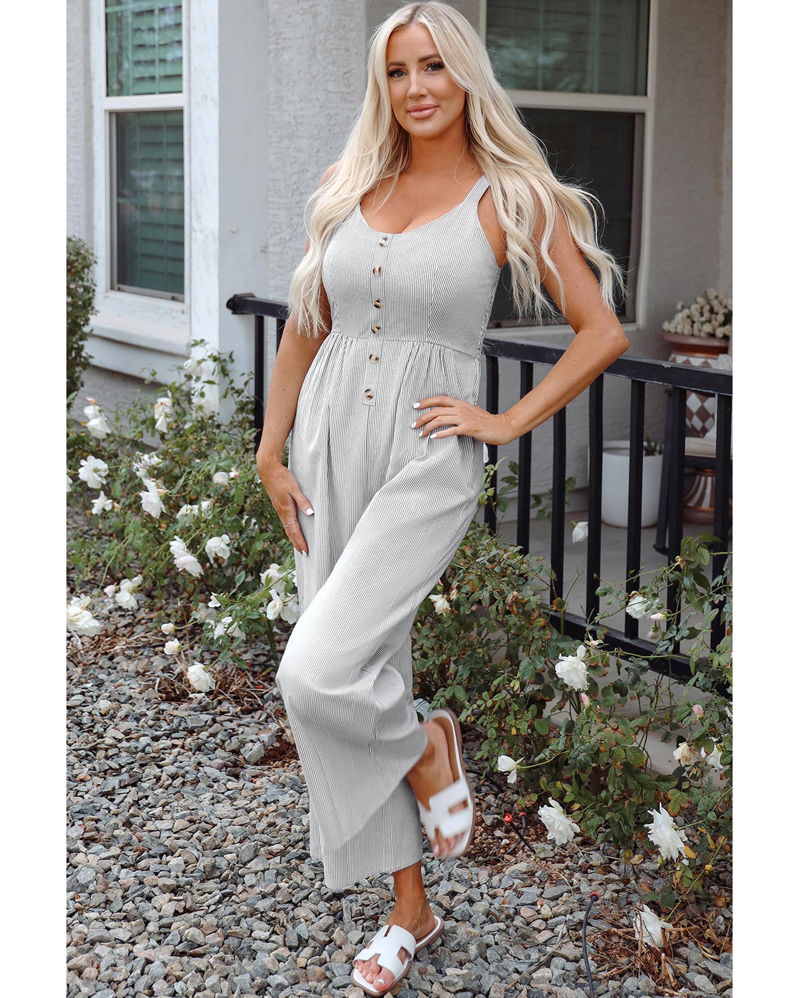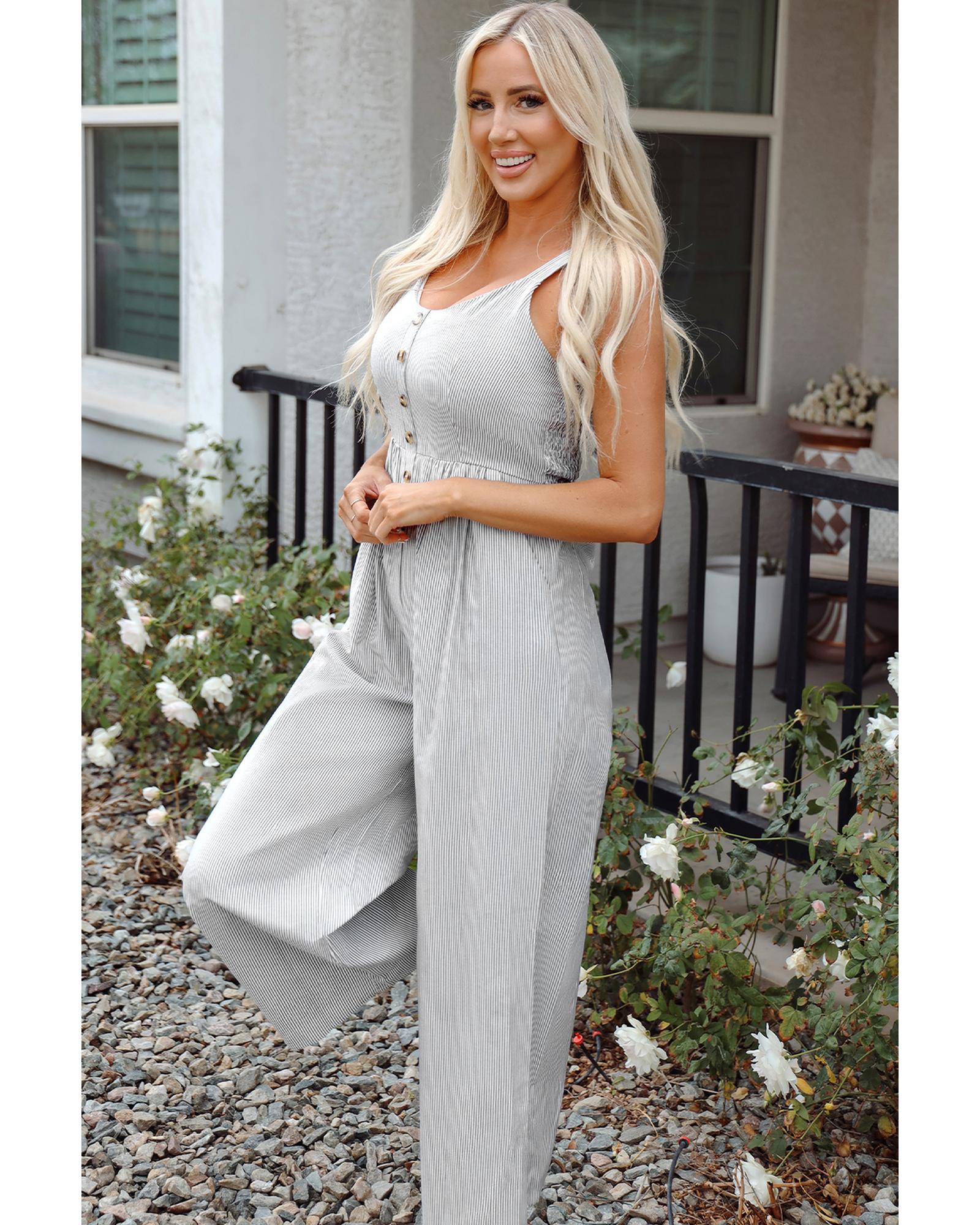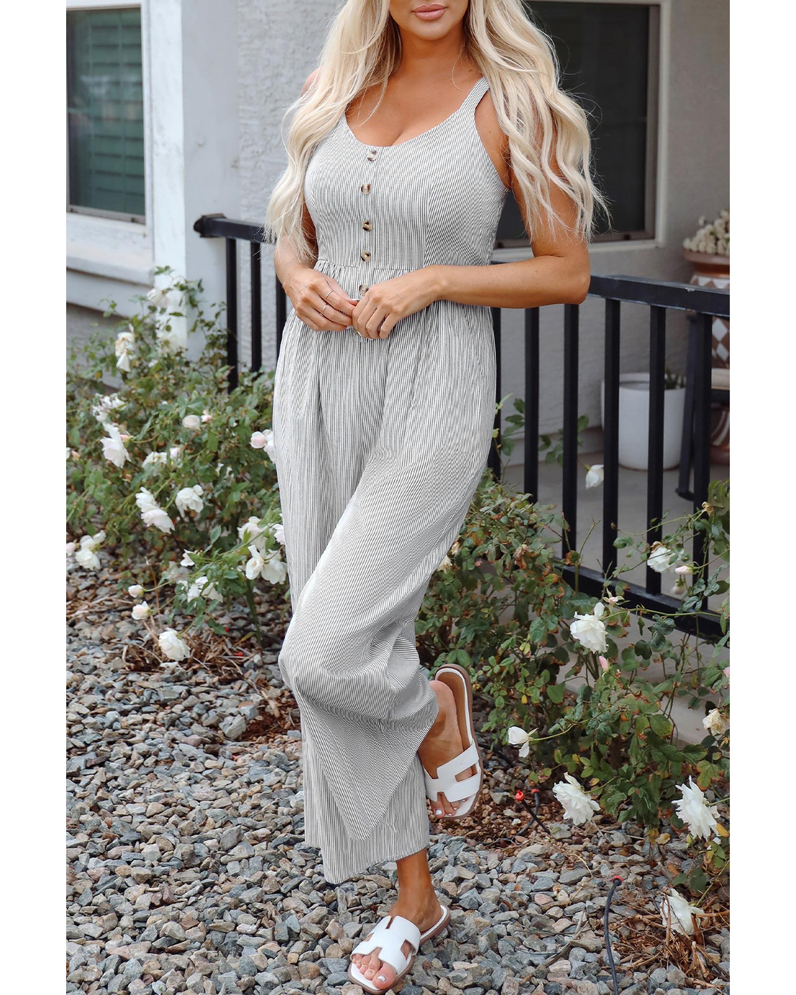 Black Stripe Half Buttoned Sleeveless Wide Leg Jumpsuit - M Original price was: $64.99.Current price is: $34.99.