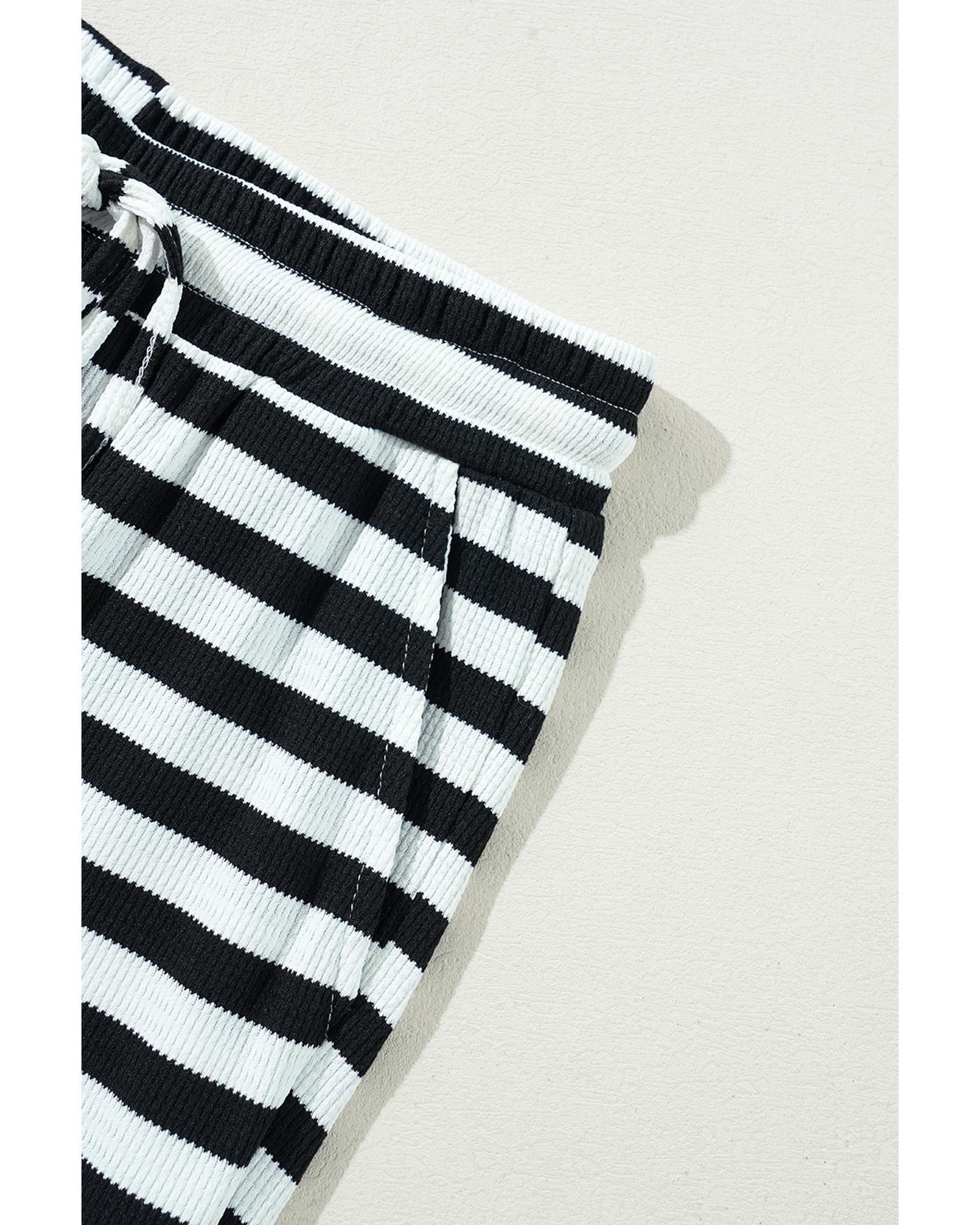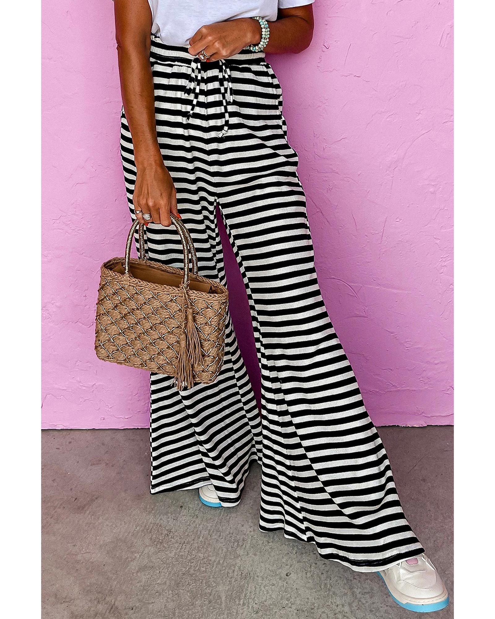 Black Stripe Lace-up Waist Casual Flared Pants – L