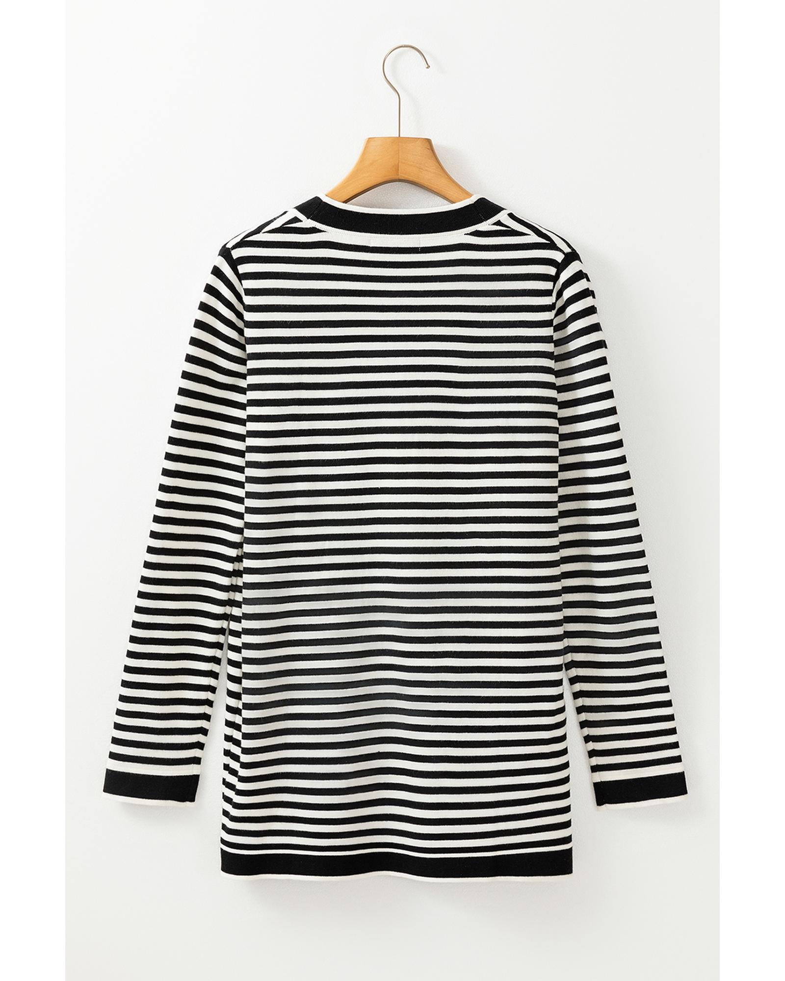 Black Stripe Long Sleeve Button up Tunic Cardigan – XL
