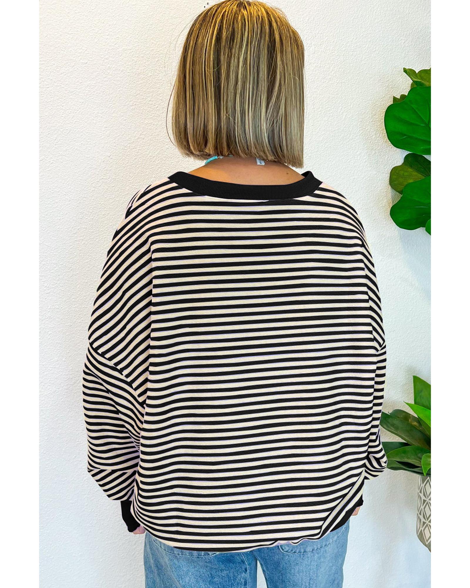 - Black Stripe Loose Drop Shoulder Long Sleeve Top