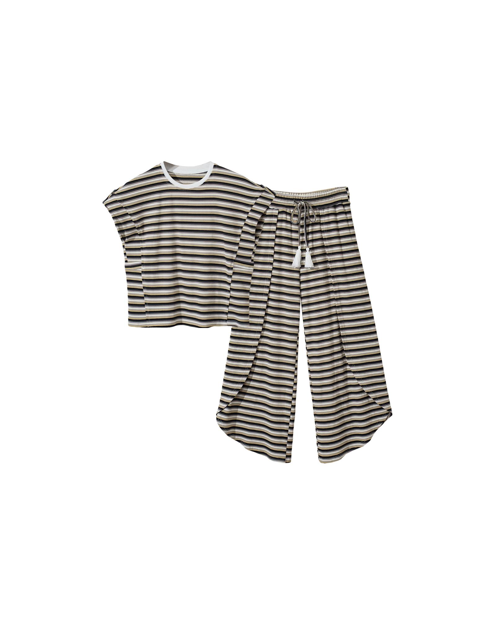Black Stripe Rainbow Tee Tasseled String Wide Leg Pants Set – XL