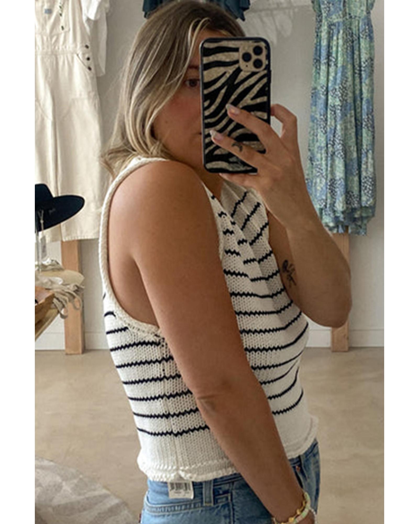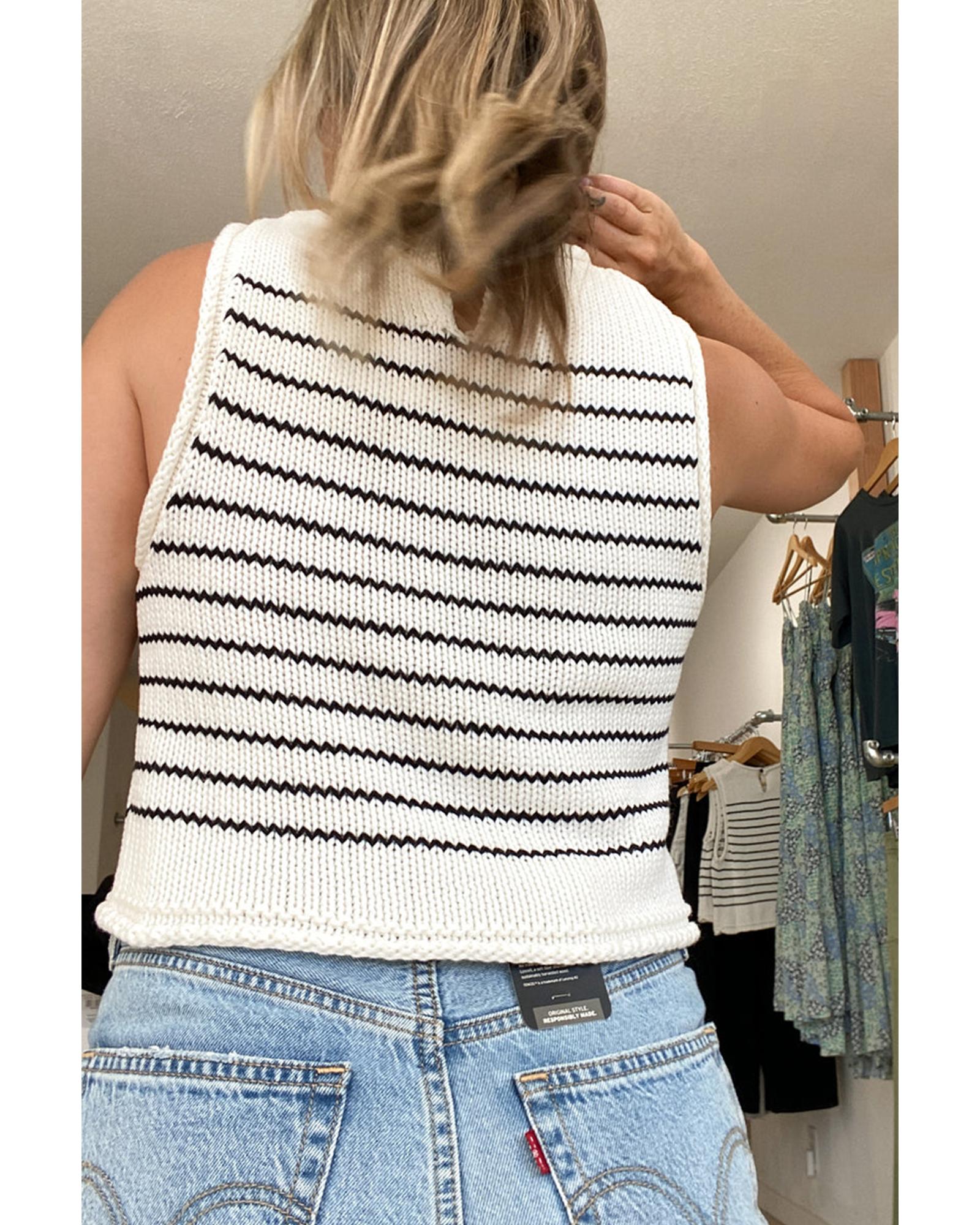 Black Stripe Raw Edge Crew Neck Knitted Vest – XL