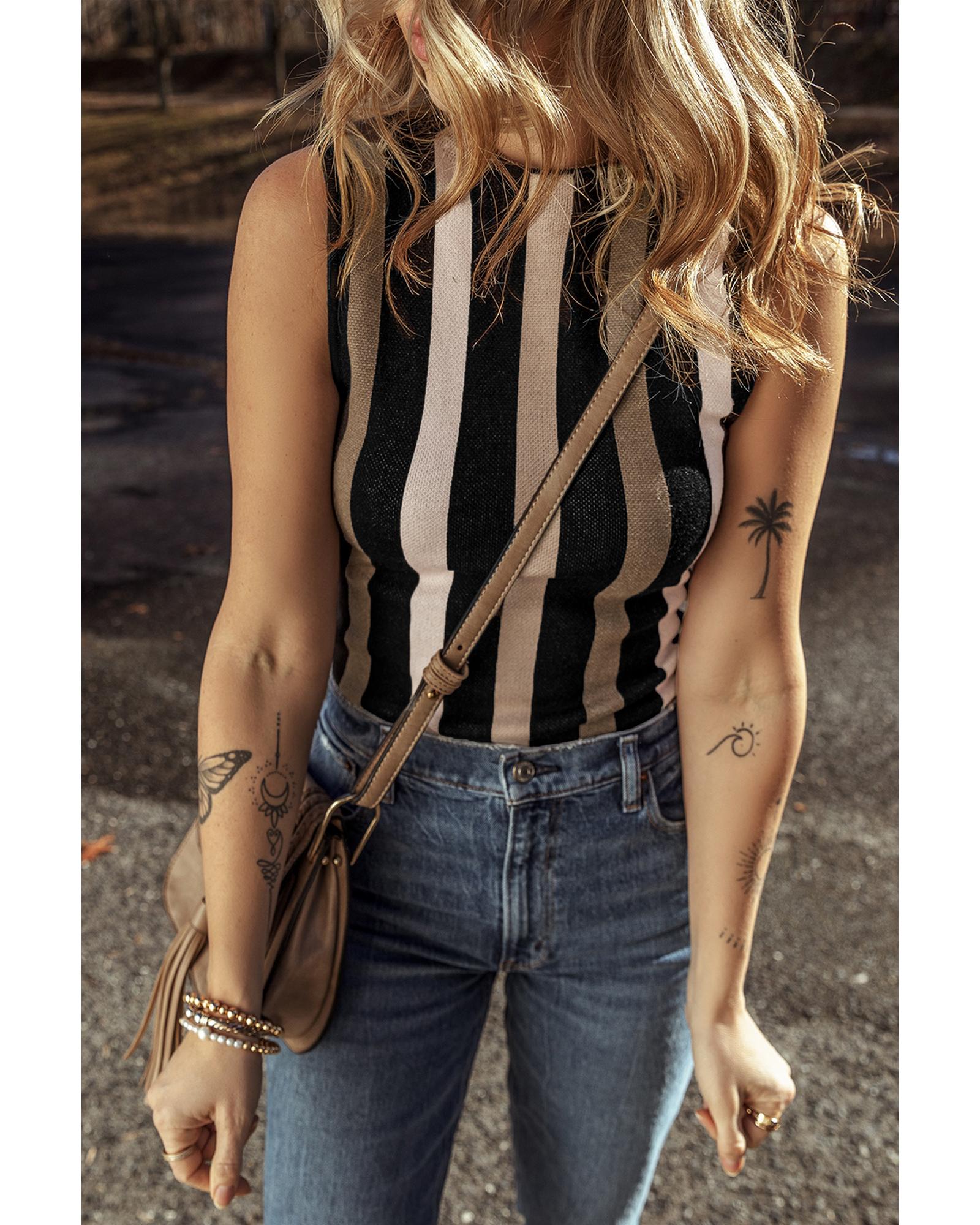 • Black Stripe Slim Fit O Neck Sweater Vest