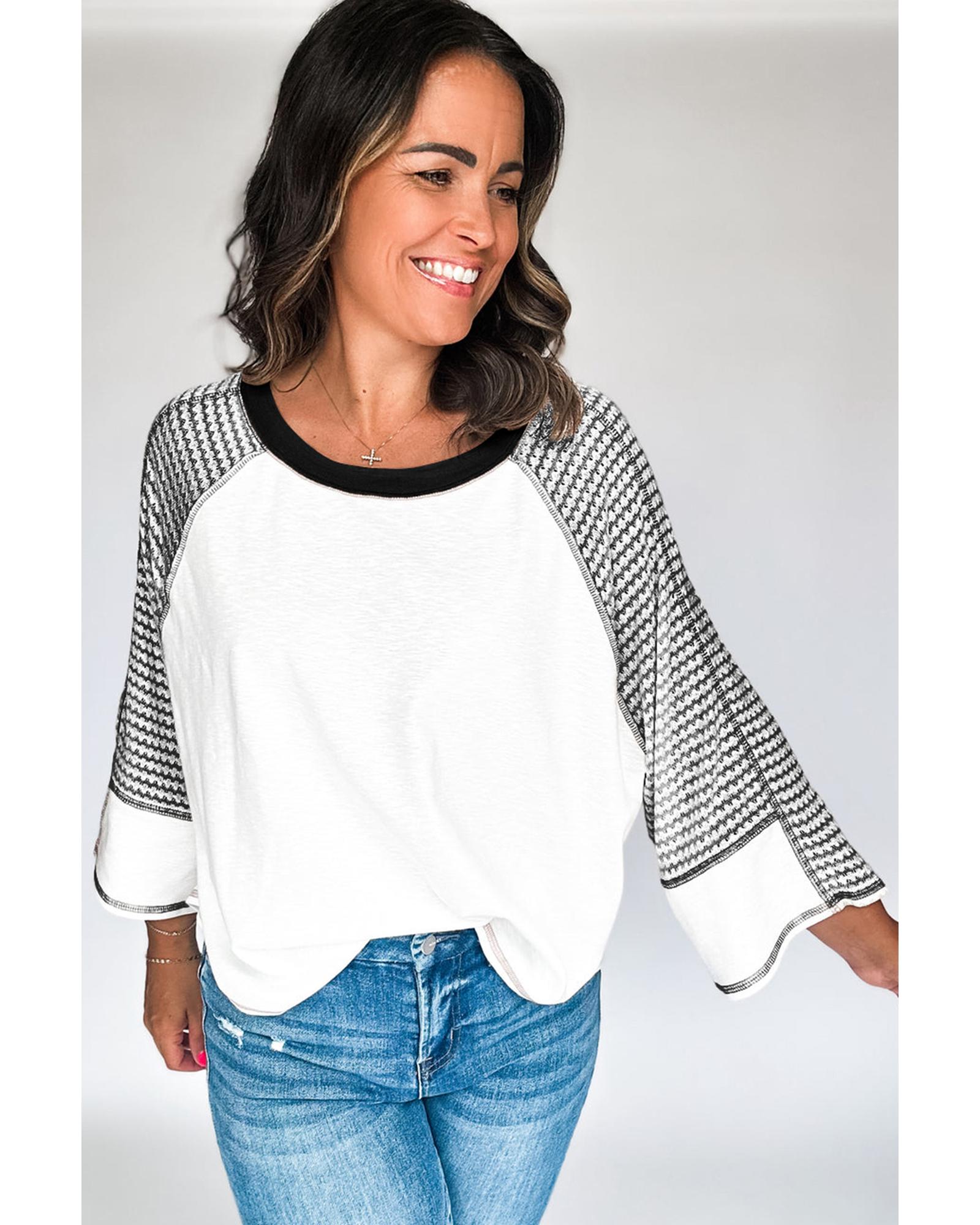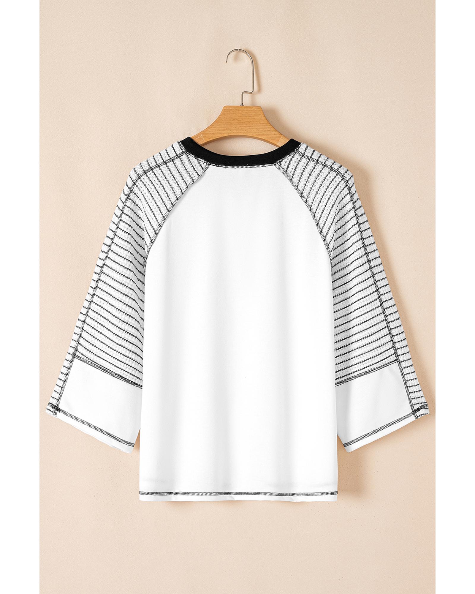 Black Striped Bracelet Sleeve Raglan Patchwork Top – S