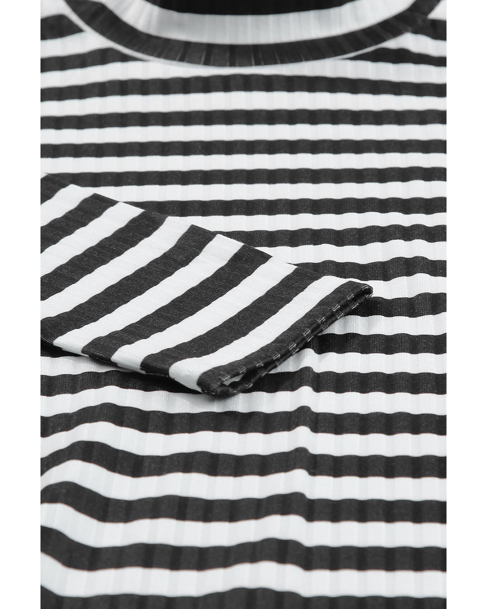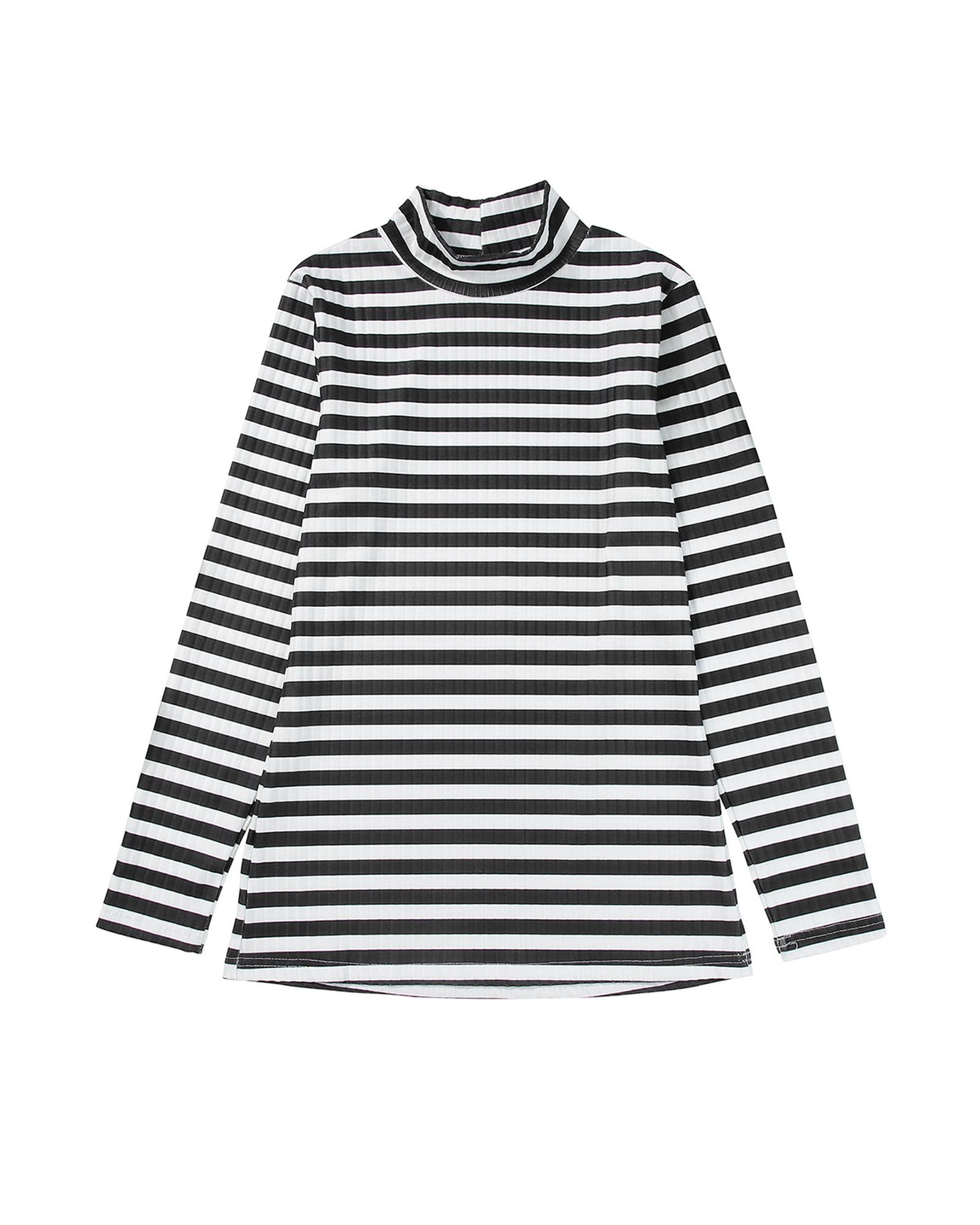 - Unisex Black Striped Print Textured Knit Long Sleeve Tee