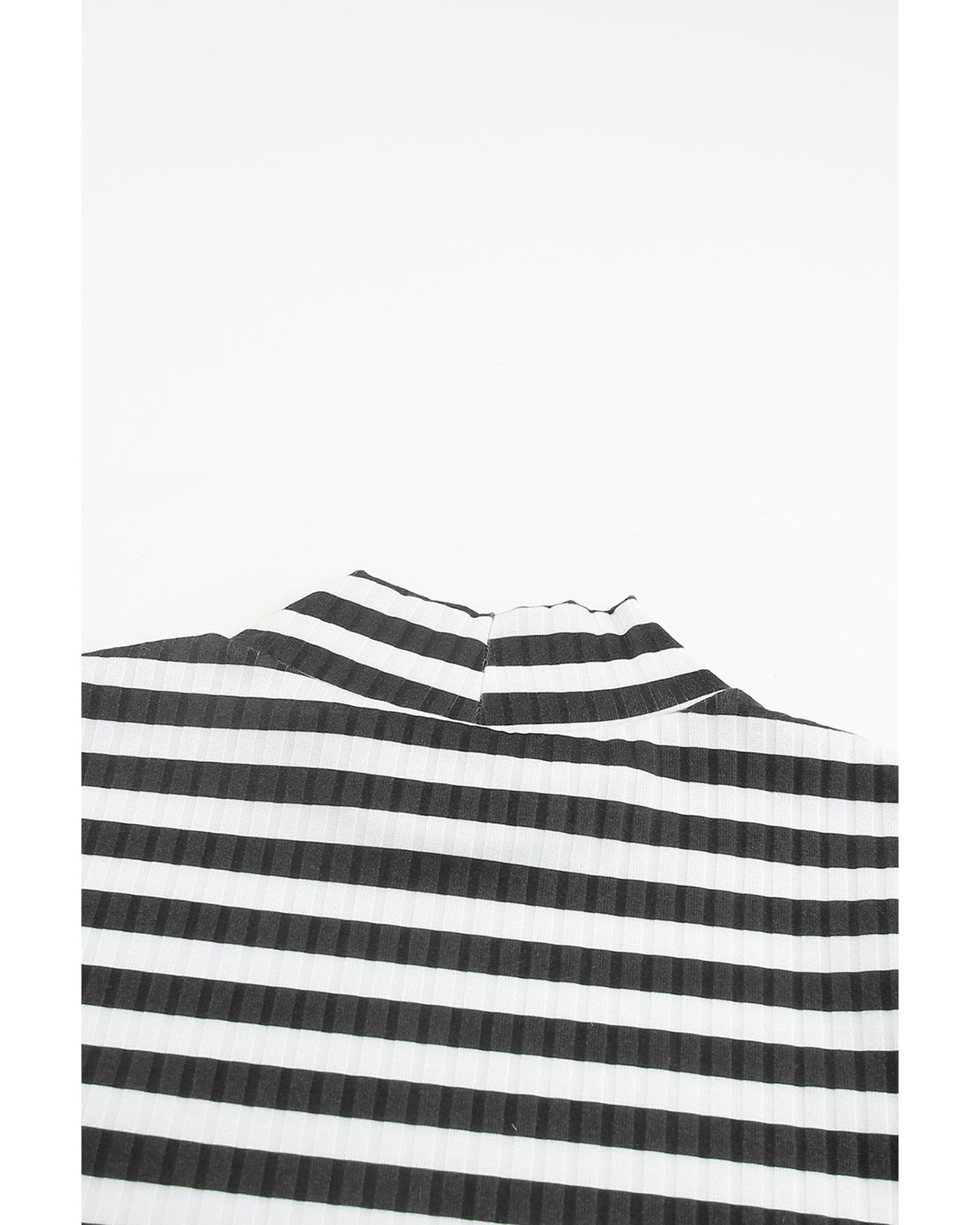 Black Striped Print Textured Knit Long Sleeve Tee – XL