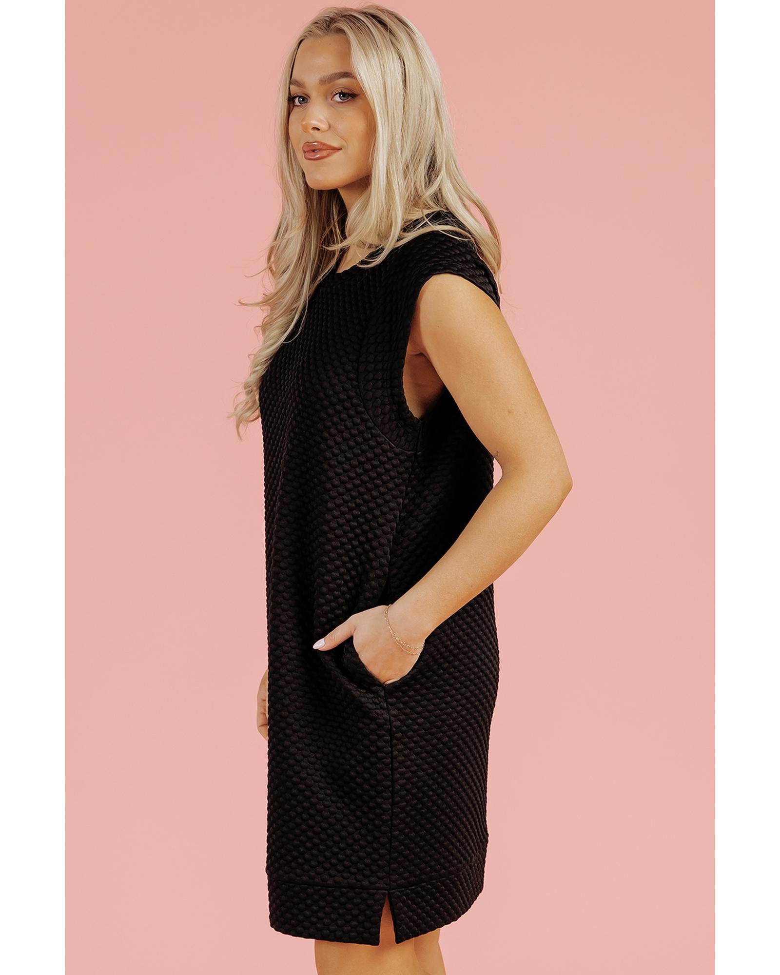 Black Textured Cap Sleeve T-shirt Shift Mini Dress – M