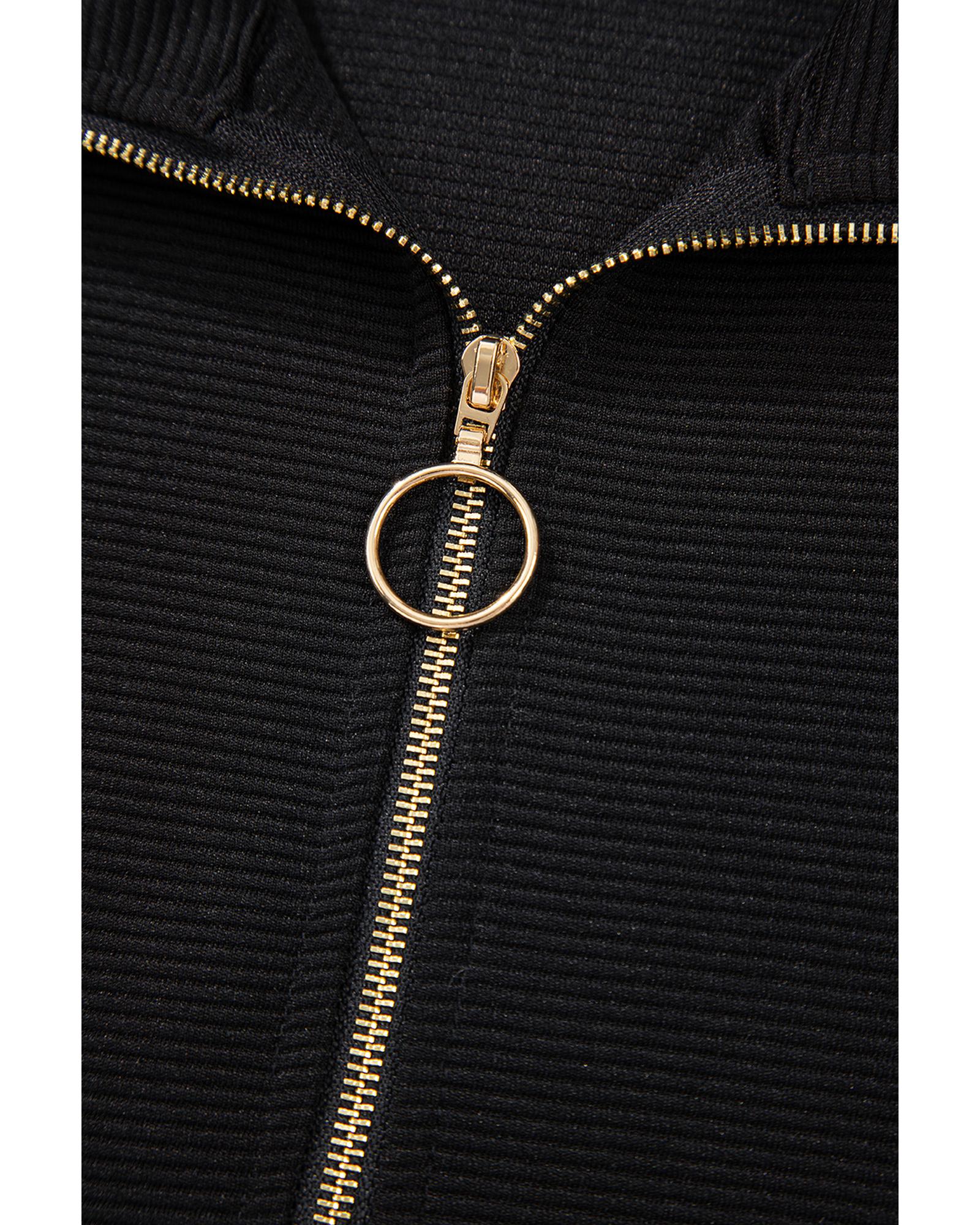 Black Textured Half Zip Kangaroo Pocket Top Drawstring Shorts Set – S