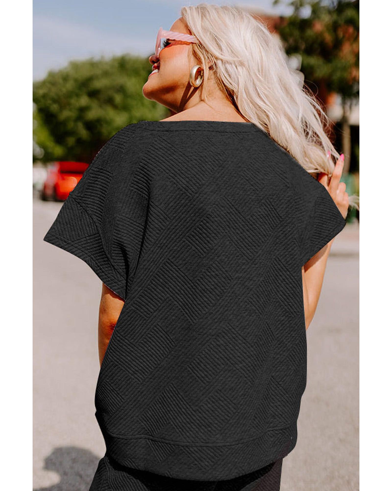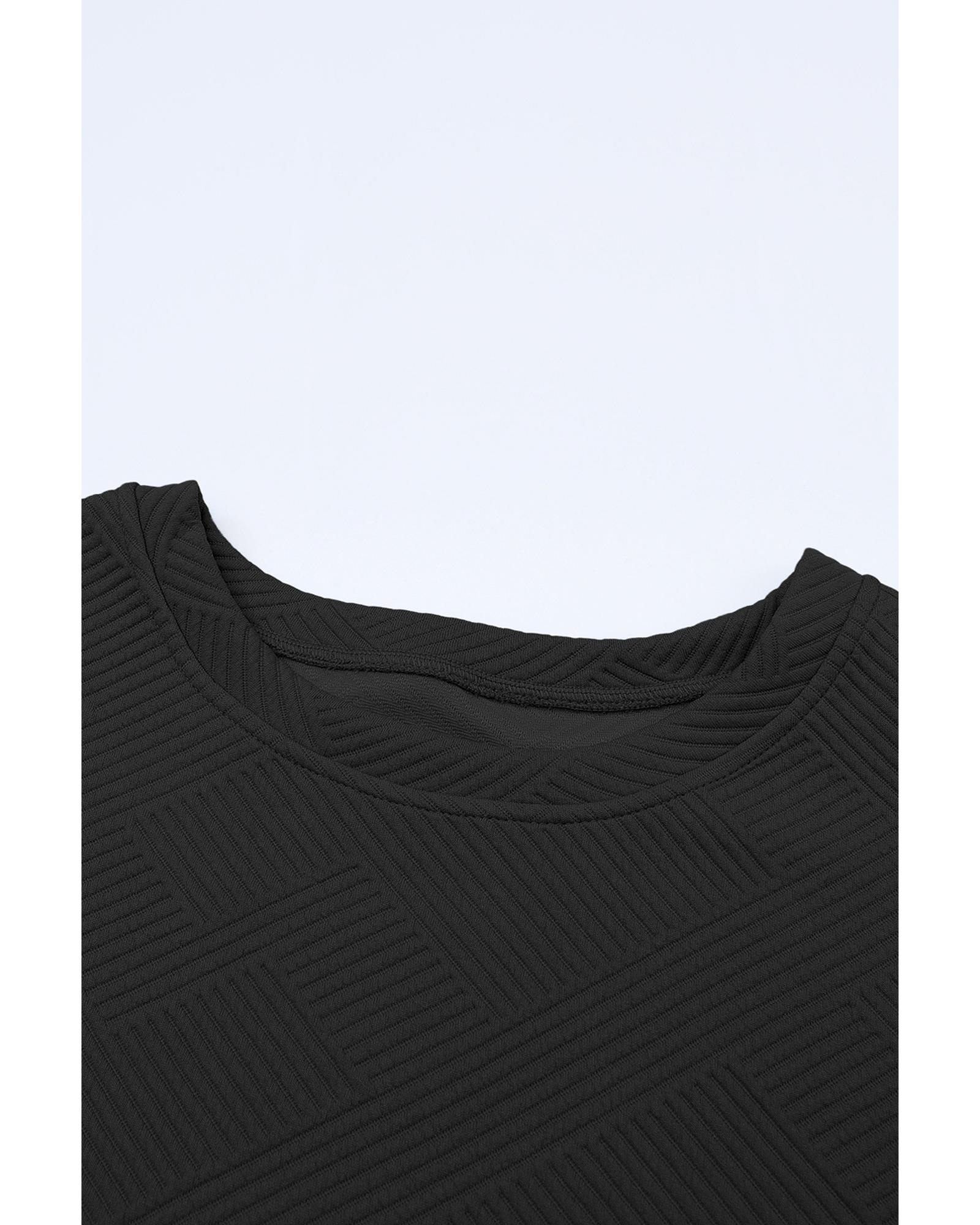 Black Textured Loose Fit T Shirt and Drawstring Pants Set – S