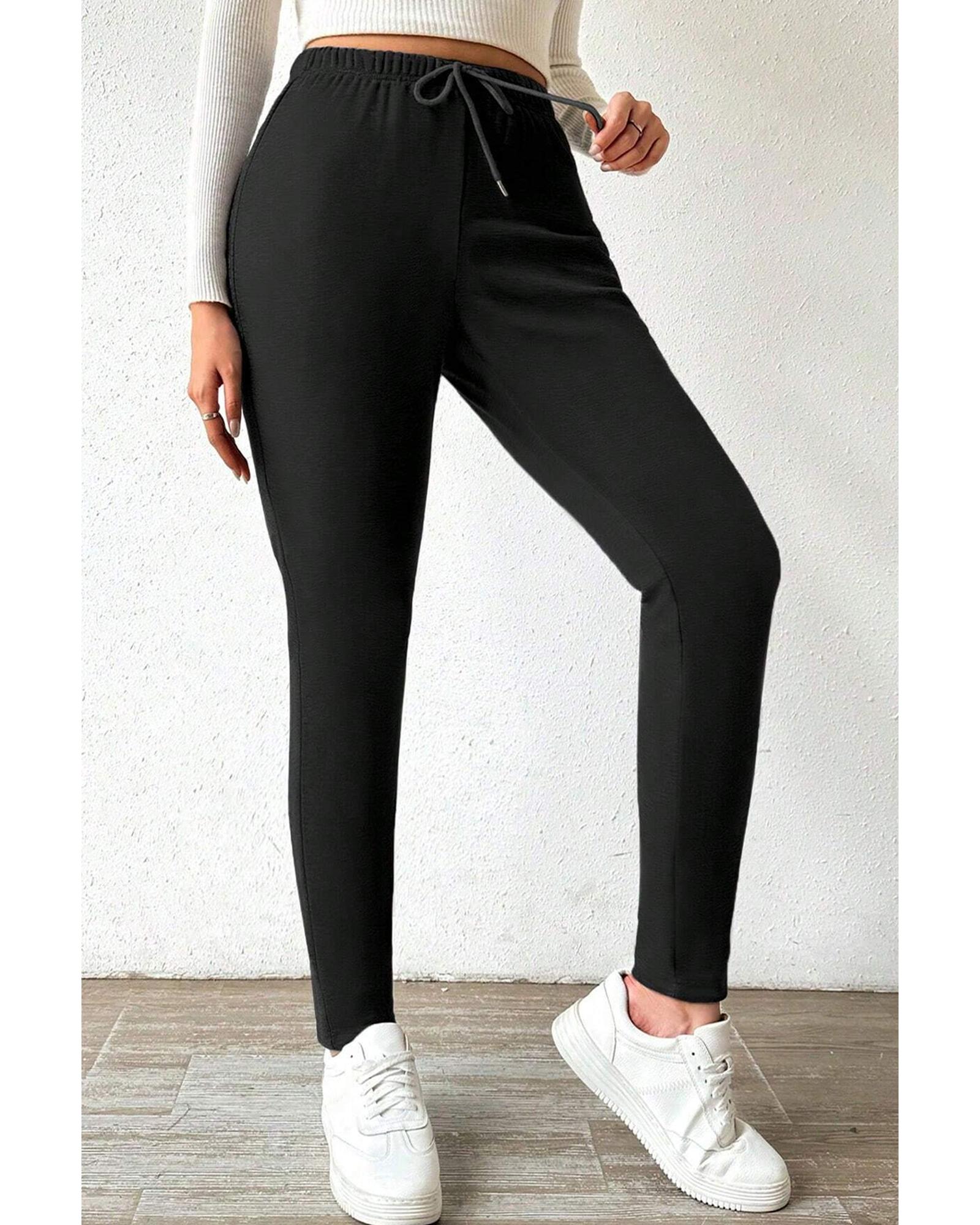 - Black Thermal Lined Drawstring High Waist Leggings