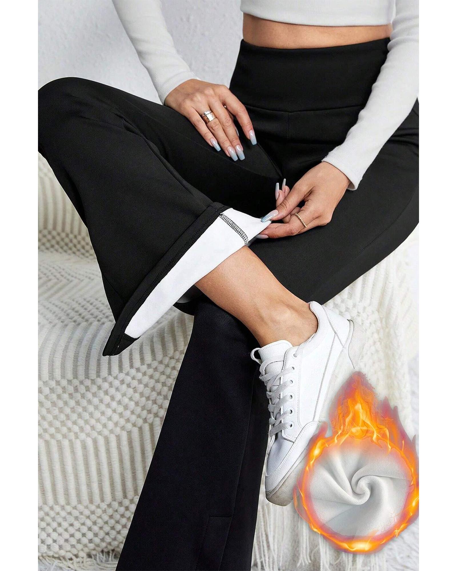Black Thermal Lined Split Flare Leg Pants - M Original price was: $68.99.Current price is: $36.99.