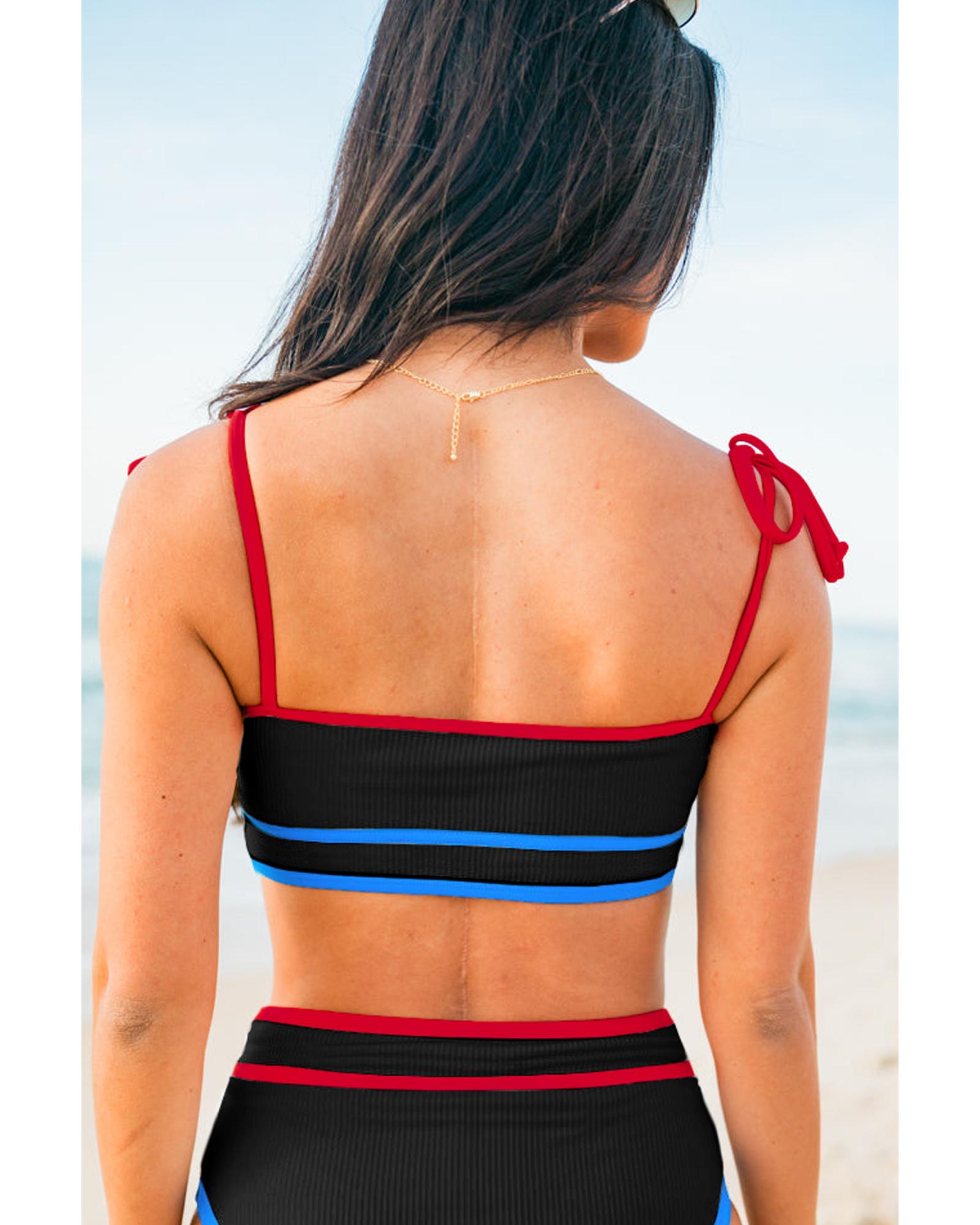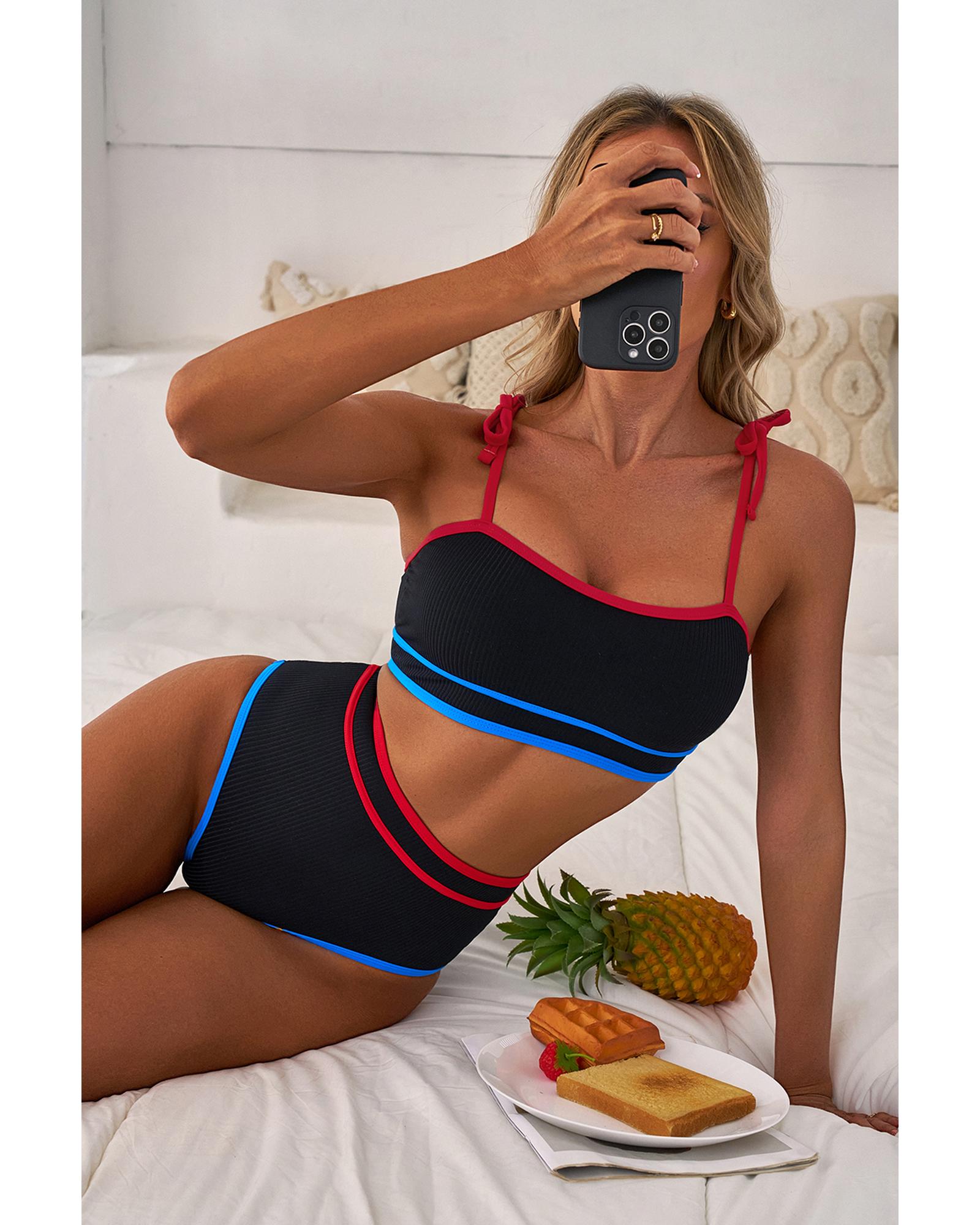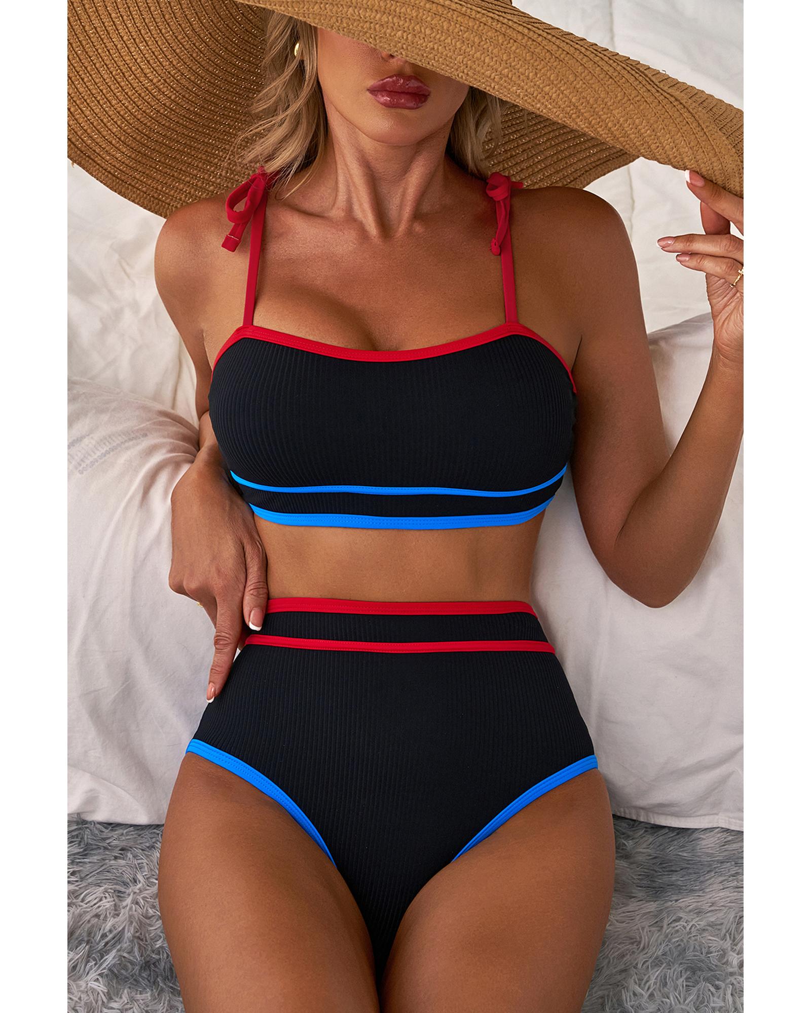 Black Triple Color Trimmed High Waist Bikini Set – 2XL