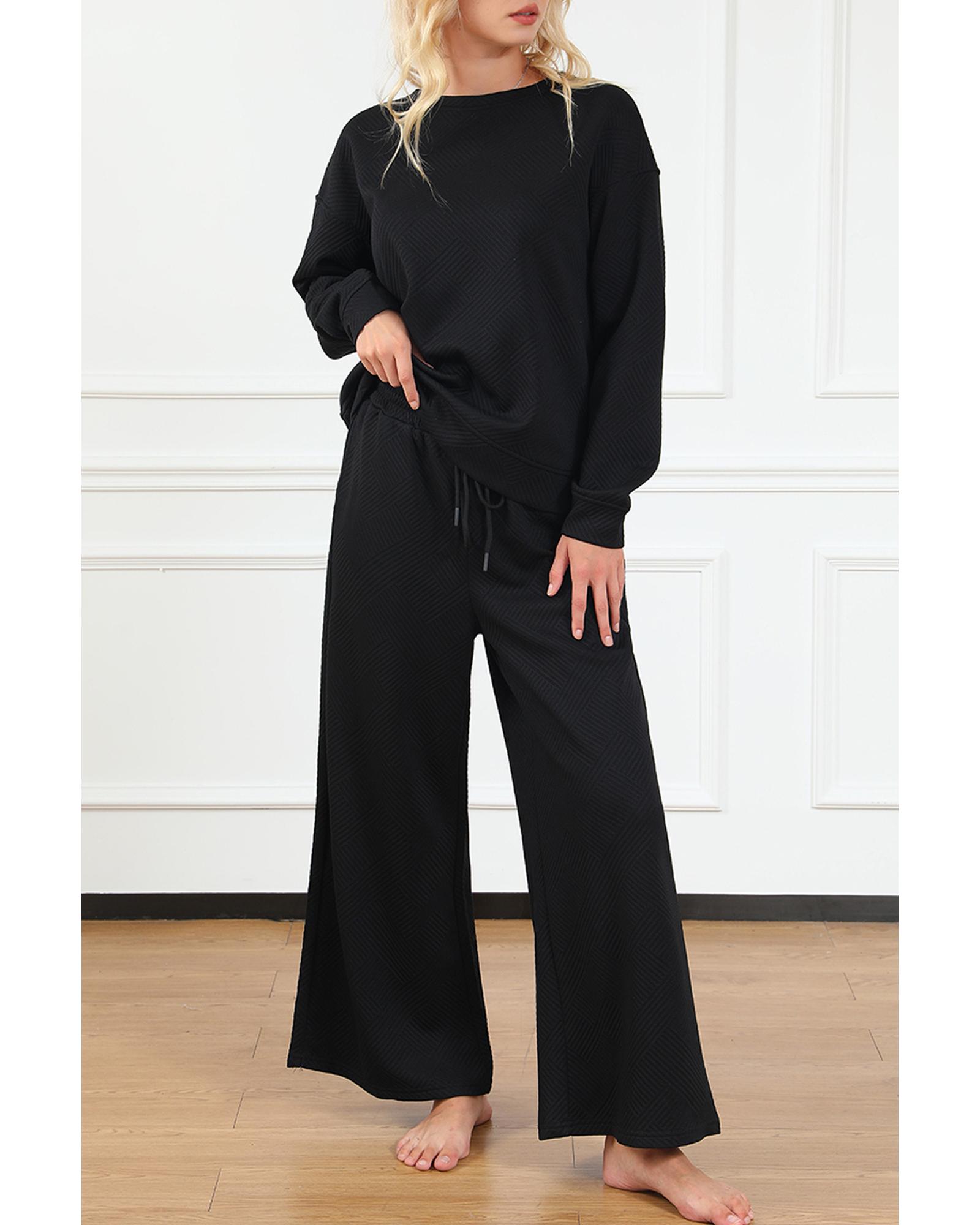 Black Ultra Loose Textured 2pcs Slouchy Outfit – 2XL