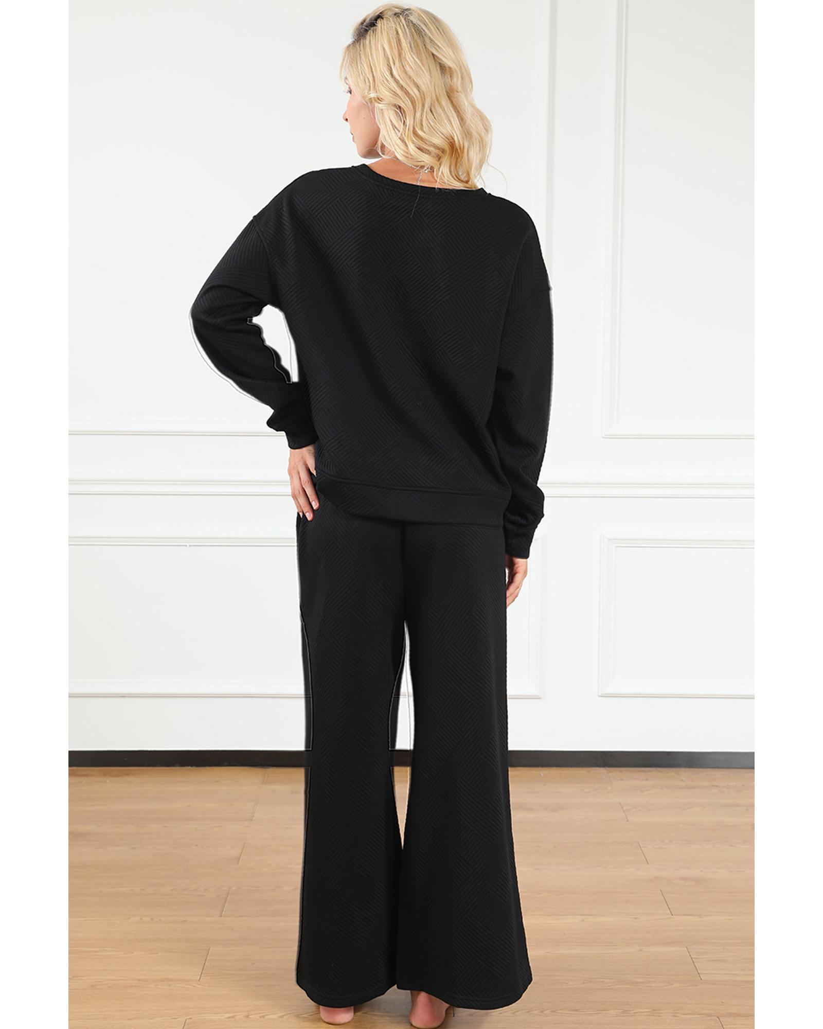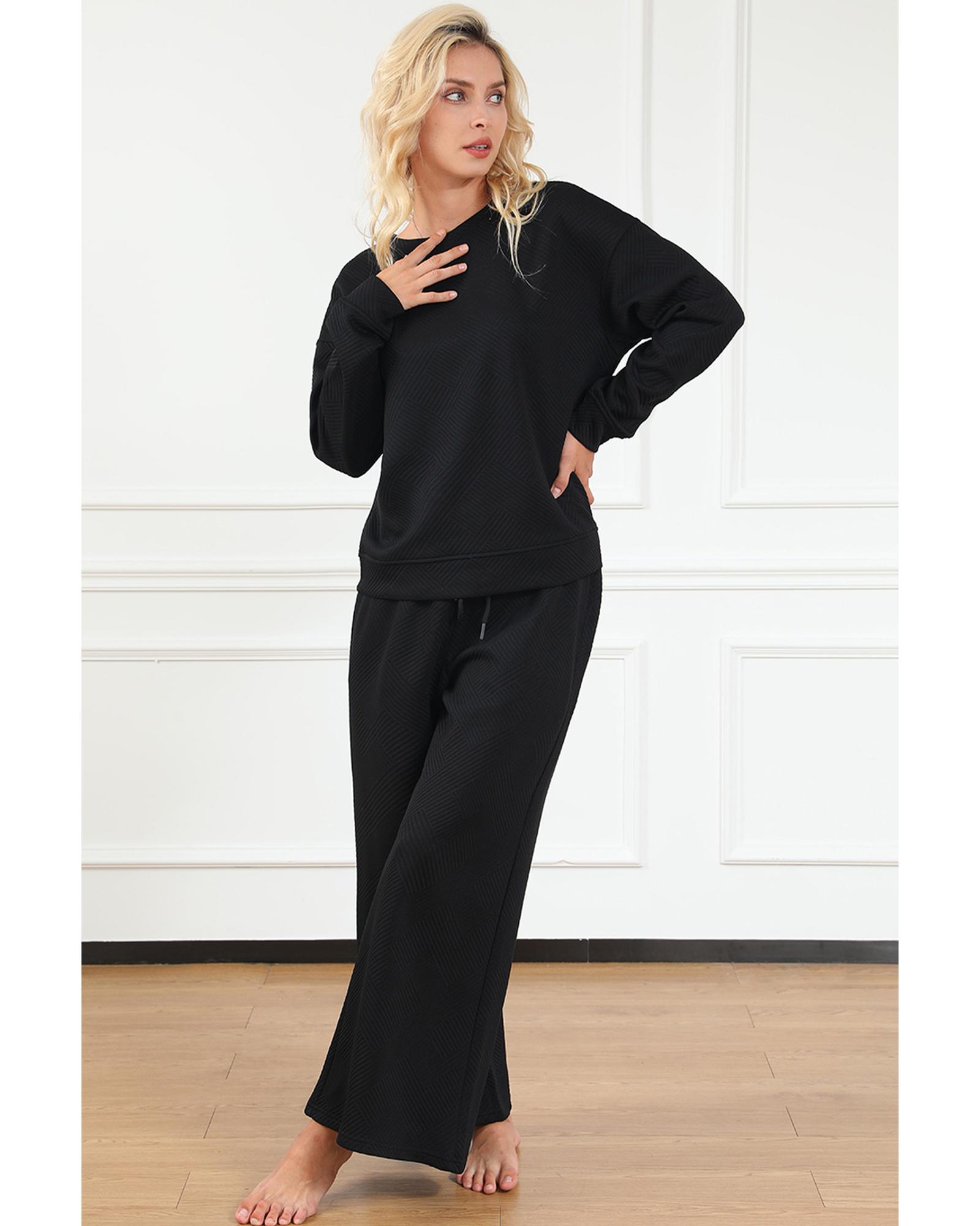 Black Ultra Loose Textured 2pcs Slouchy Outfit – L