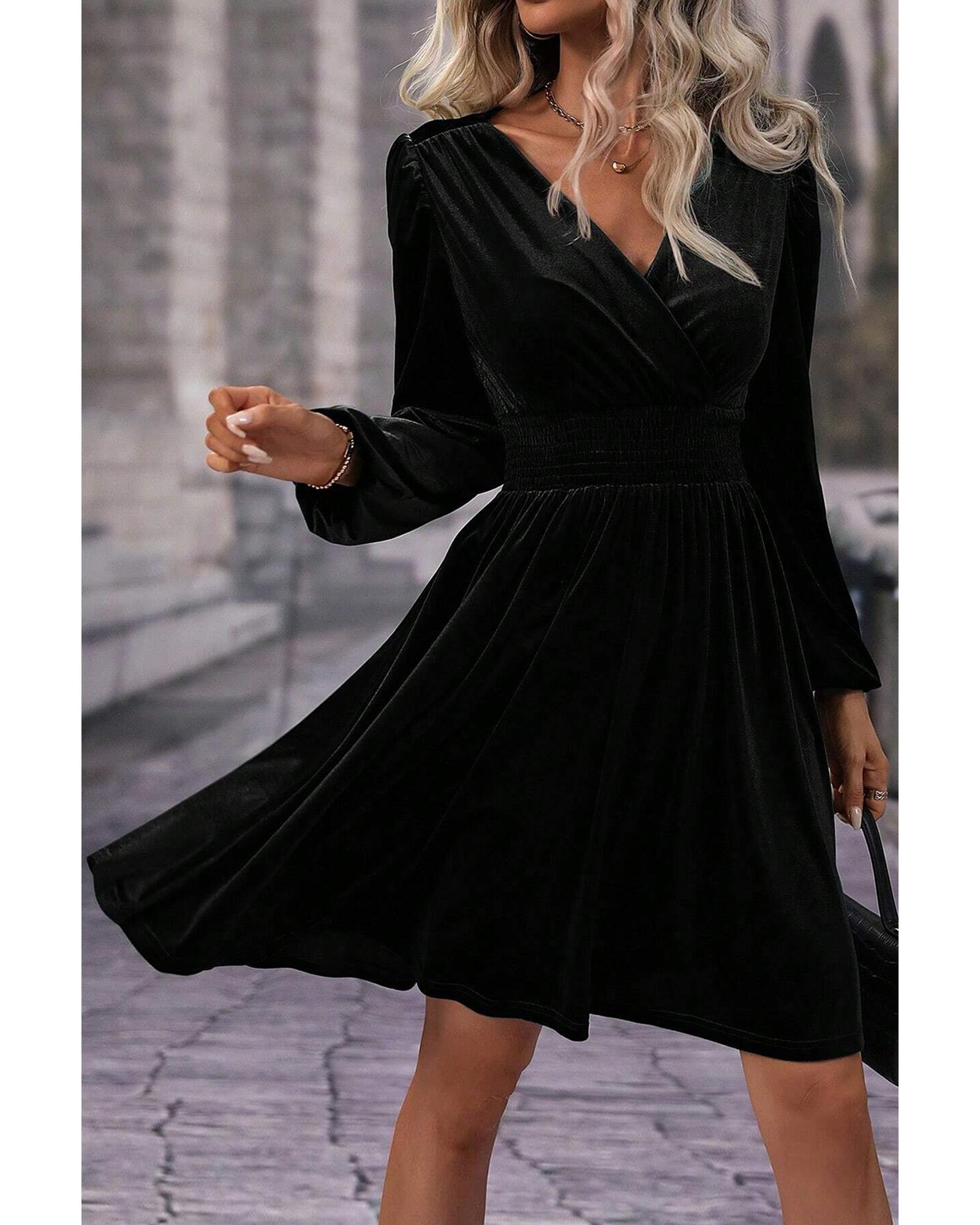 Black Velvet Long Sleeve Surplice High Waist Mini Dress – XL