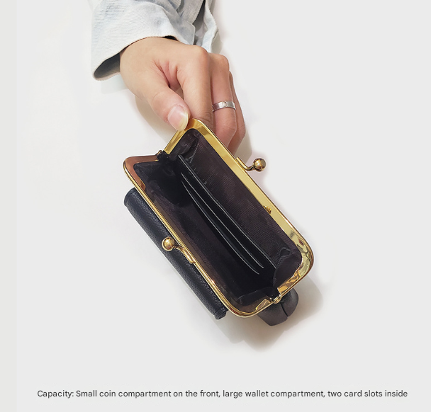 Black Vintage Style Women’s Kiss Lock Coin Purse – Compact PU Leather Wallet with Card Holder