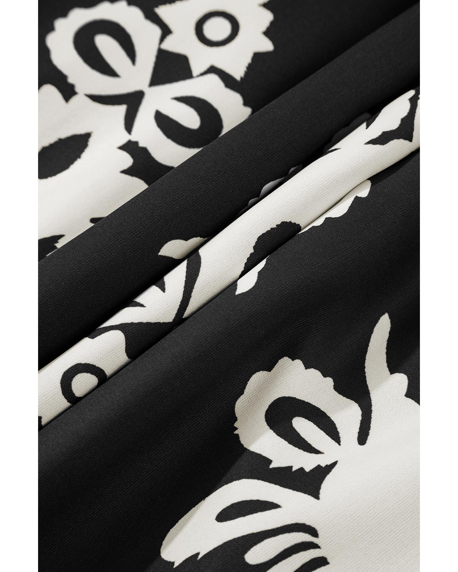 Black Western Geometric Print 3/4 Sleeve Loose Midi Dress – S