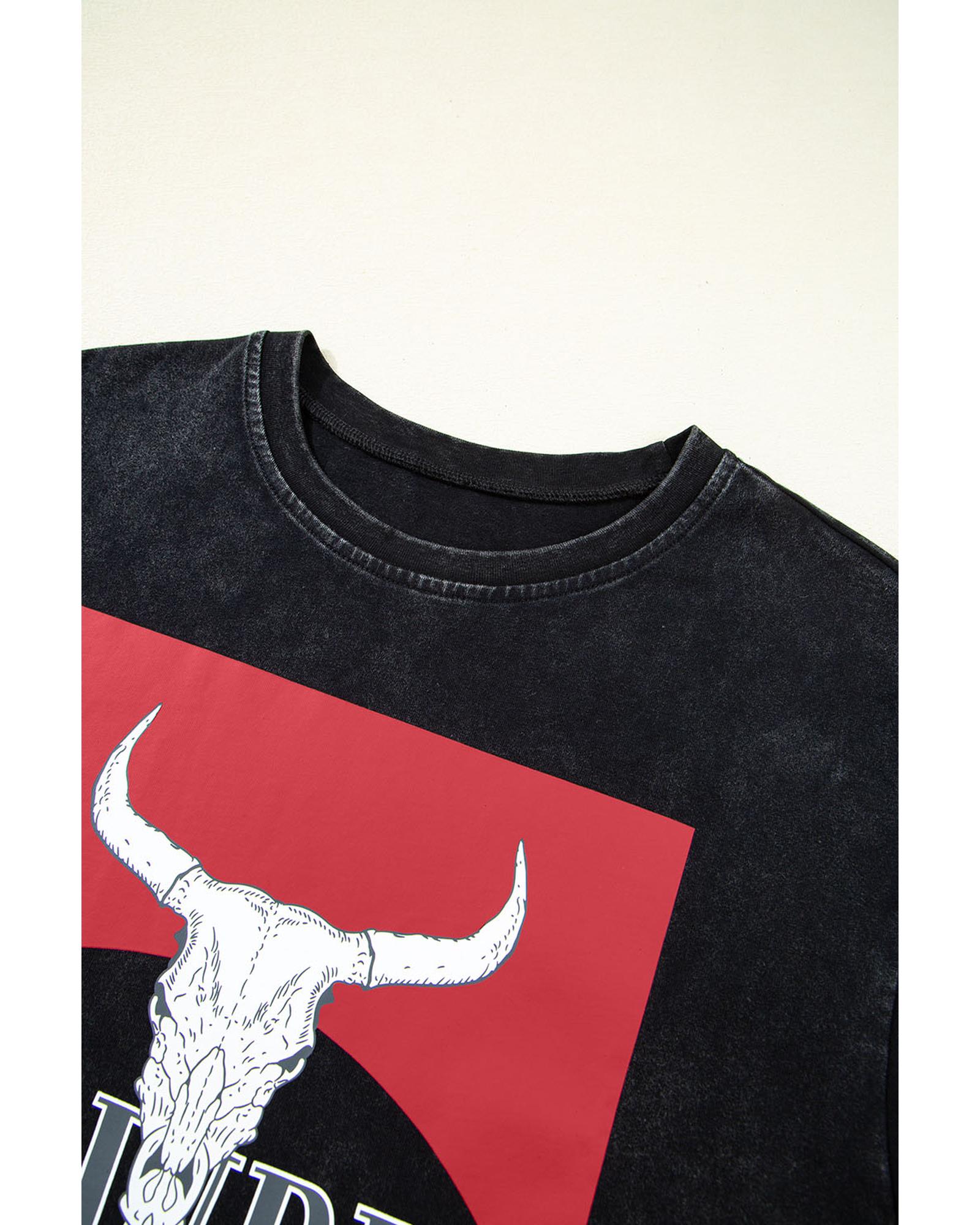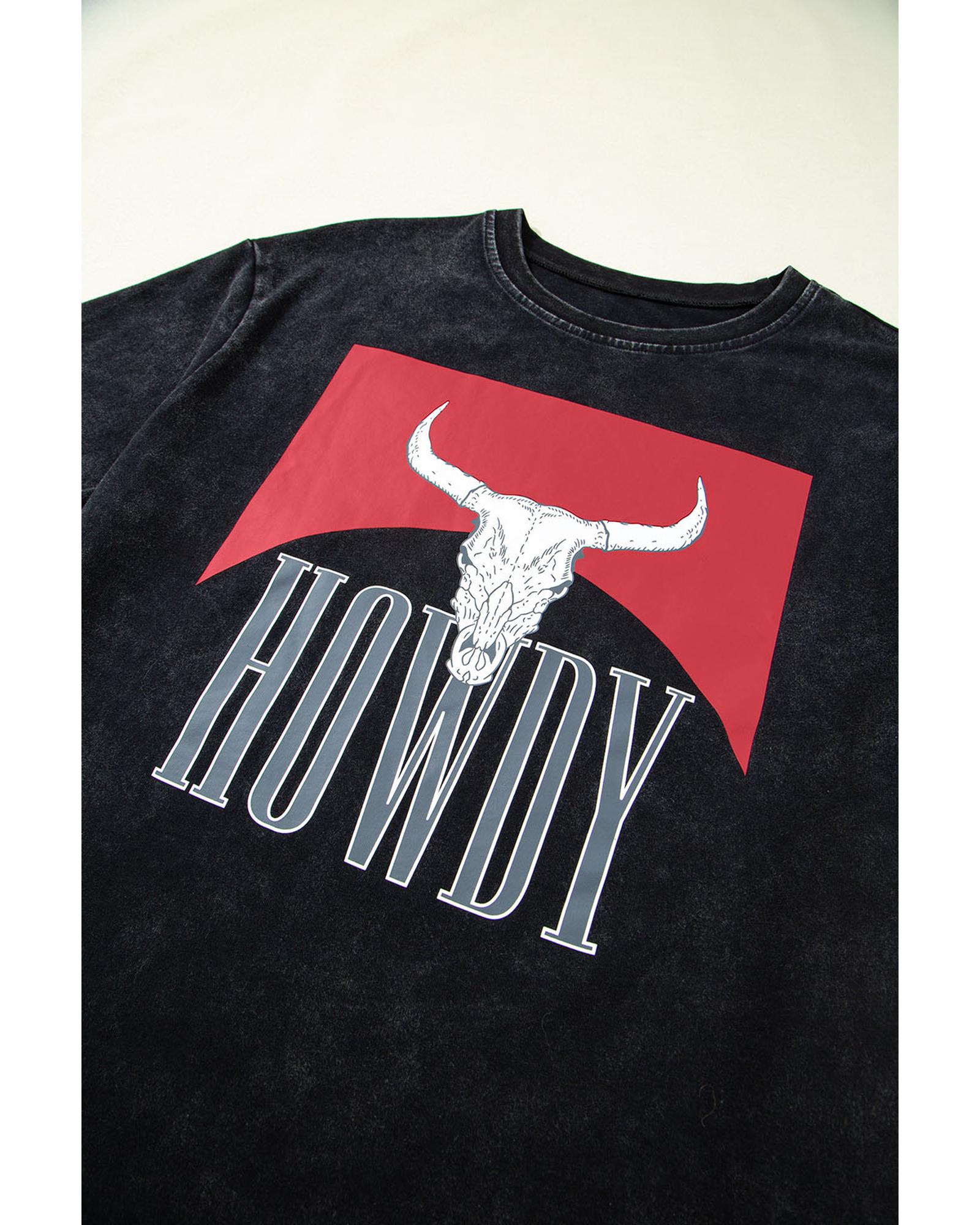 Black Western HOWDY Steer Head Print Side Slits Loose Fit T Shirt – XL