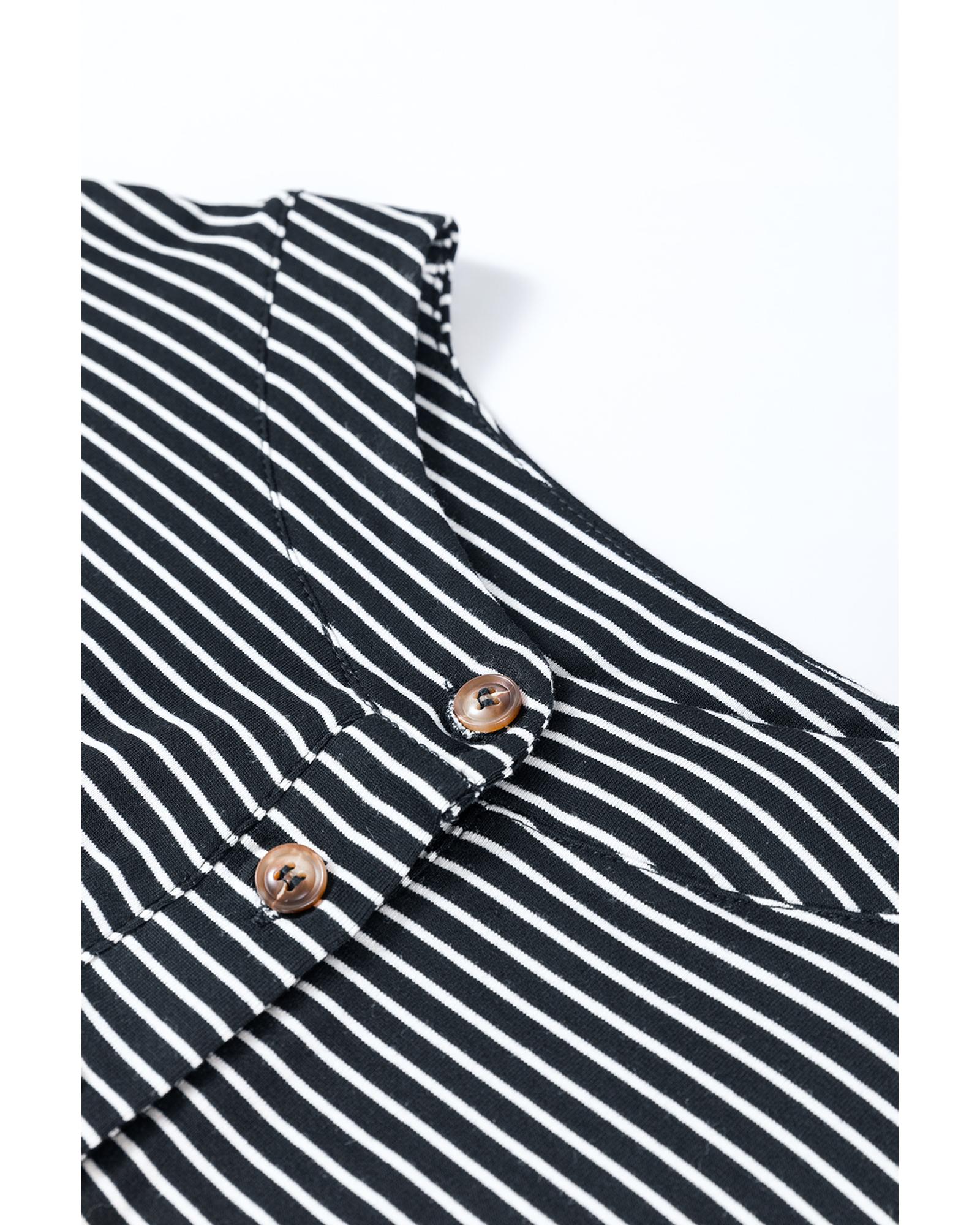 Black white Striped Print Buttoned Wide Leg Sleeveless Jumpsuit – L
