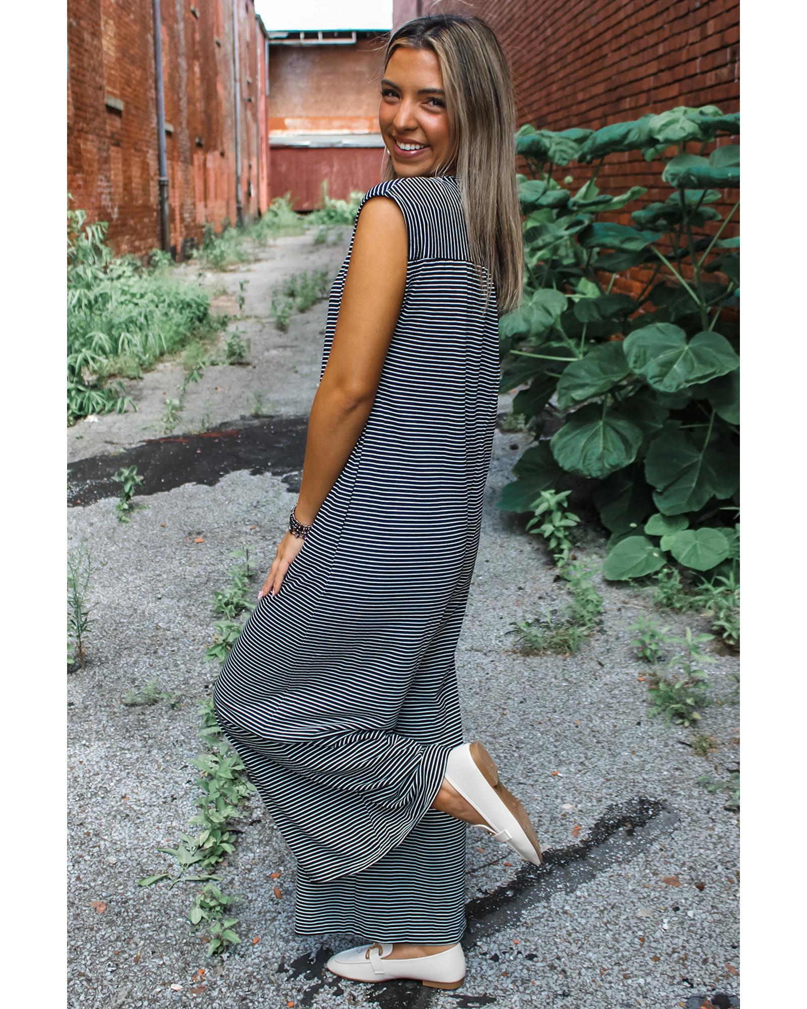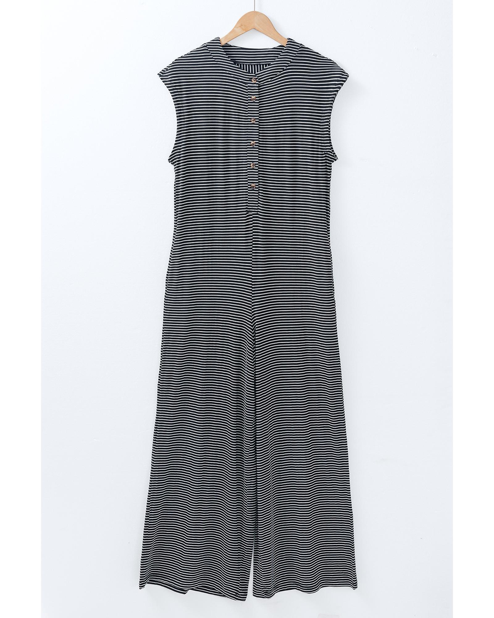 Black white Striped Print Buttoned Wide Leg Sleeveless Jumpsuit – XL