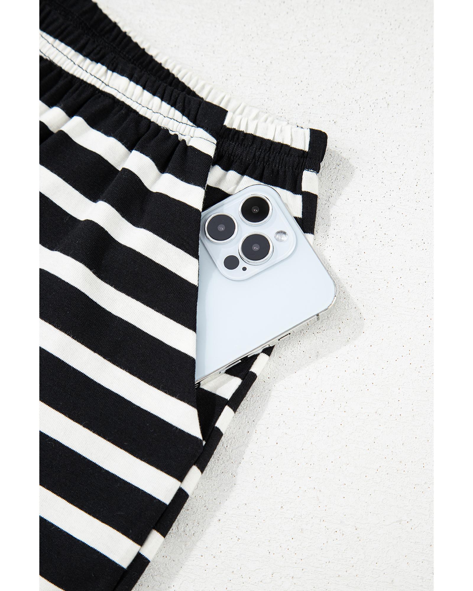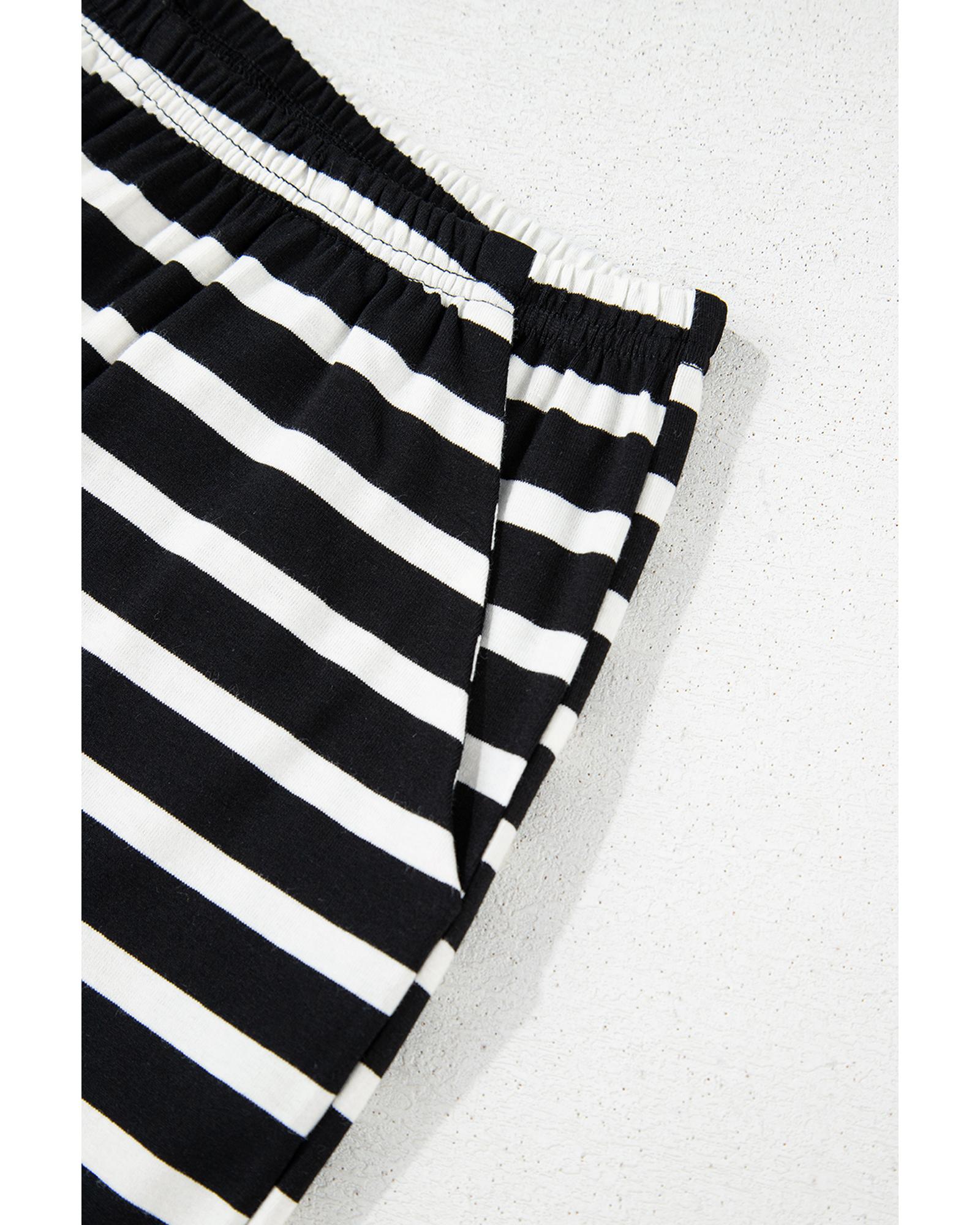 Black White Striped Short Sleeve Top and Shorts Set - S