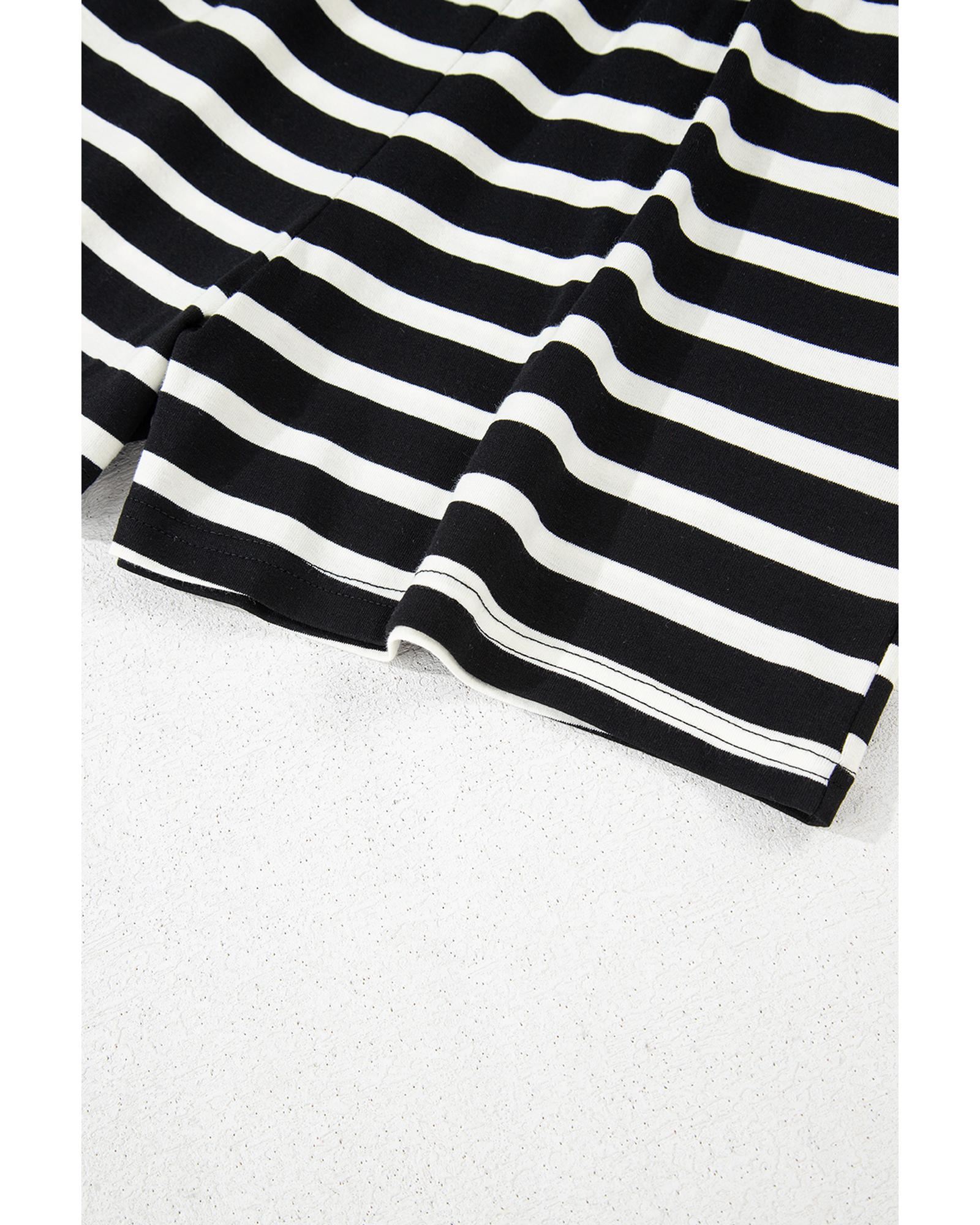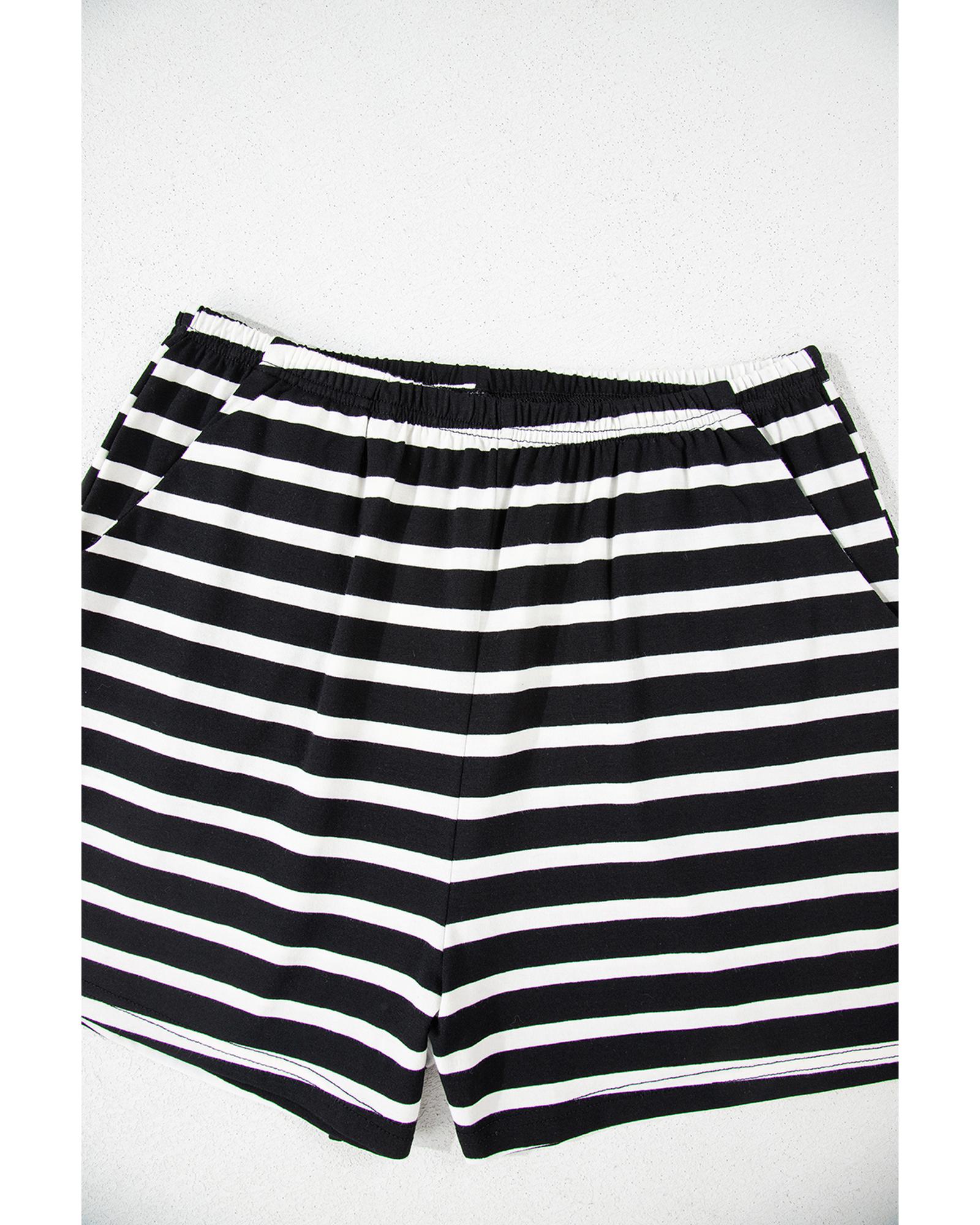 Black White Striped Short Sleeve Top and Shorts Set – XL