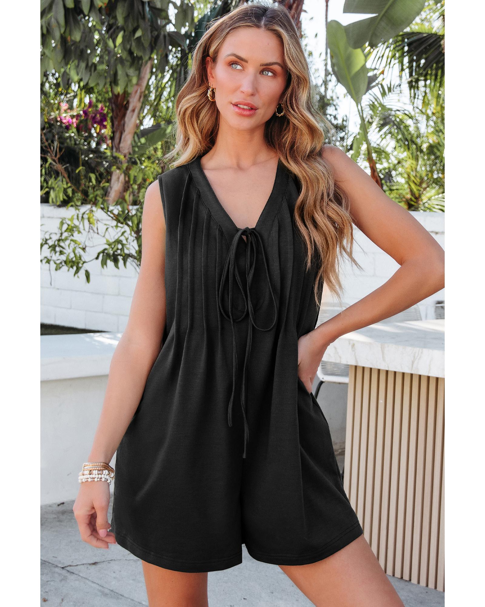 Black white Tie V Neck Pintuck Sleeveless Loose Romper – 2XL