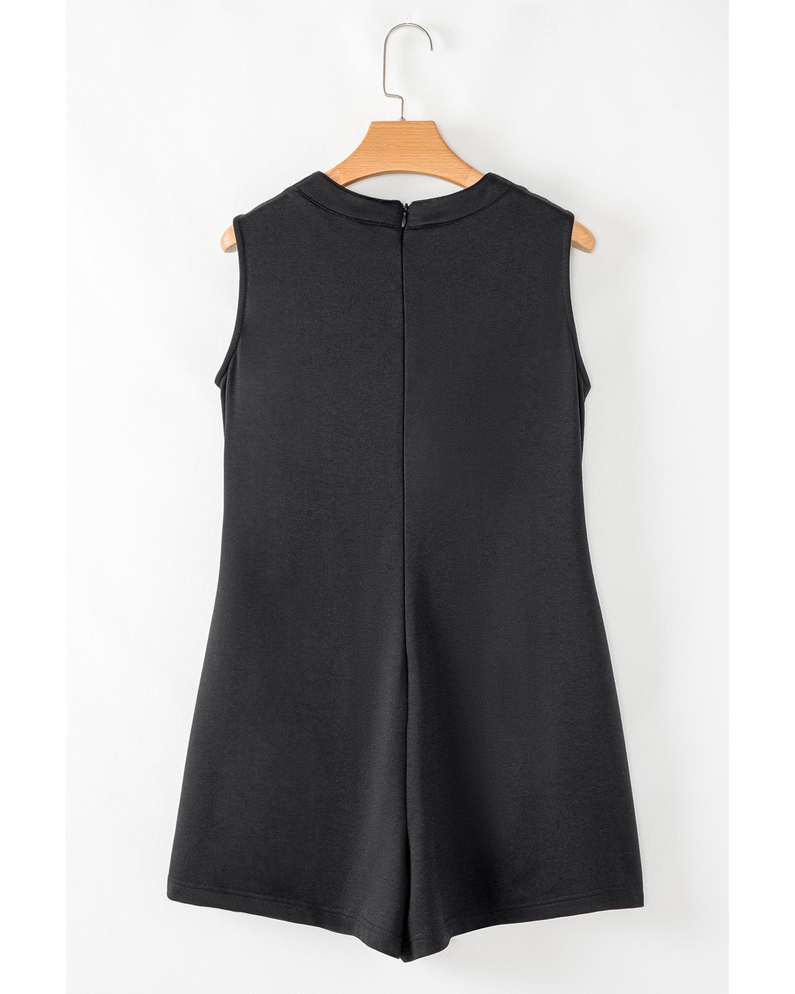 Black white Tie V Neck Pintuck Sleeveless Loose Romper – S