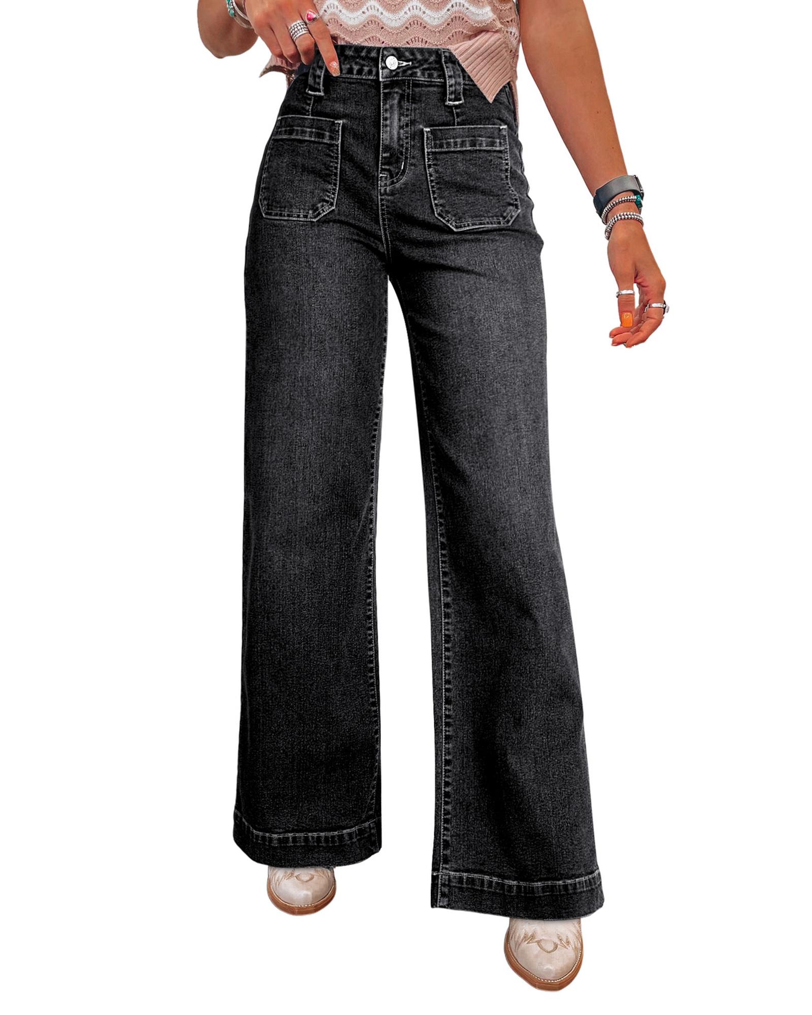 Black Wide Leg Pocketed High Waist Jeans – 12 US