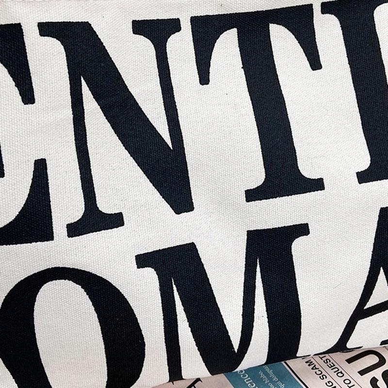 Black Women Canvas Shoulder Tote Printed Letters