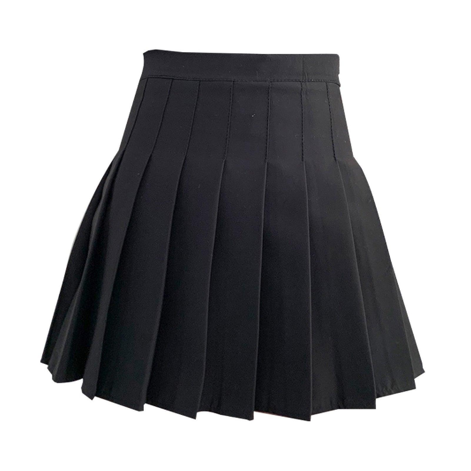 Black Women High Waist Pleated Tennis Skirt Summer Slimming – S