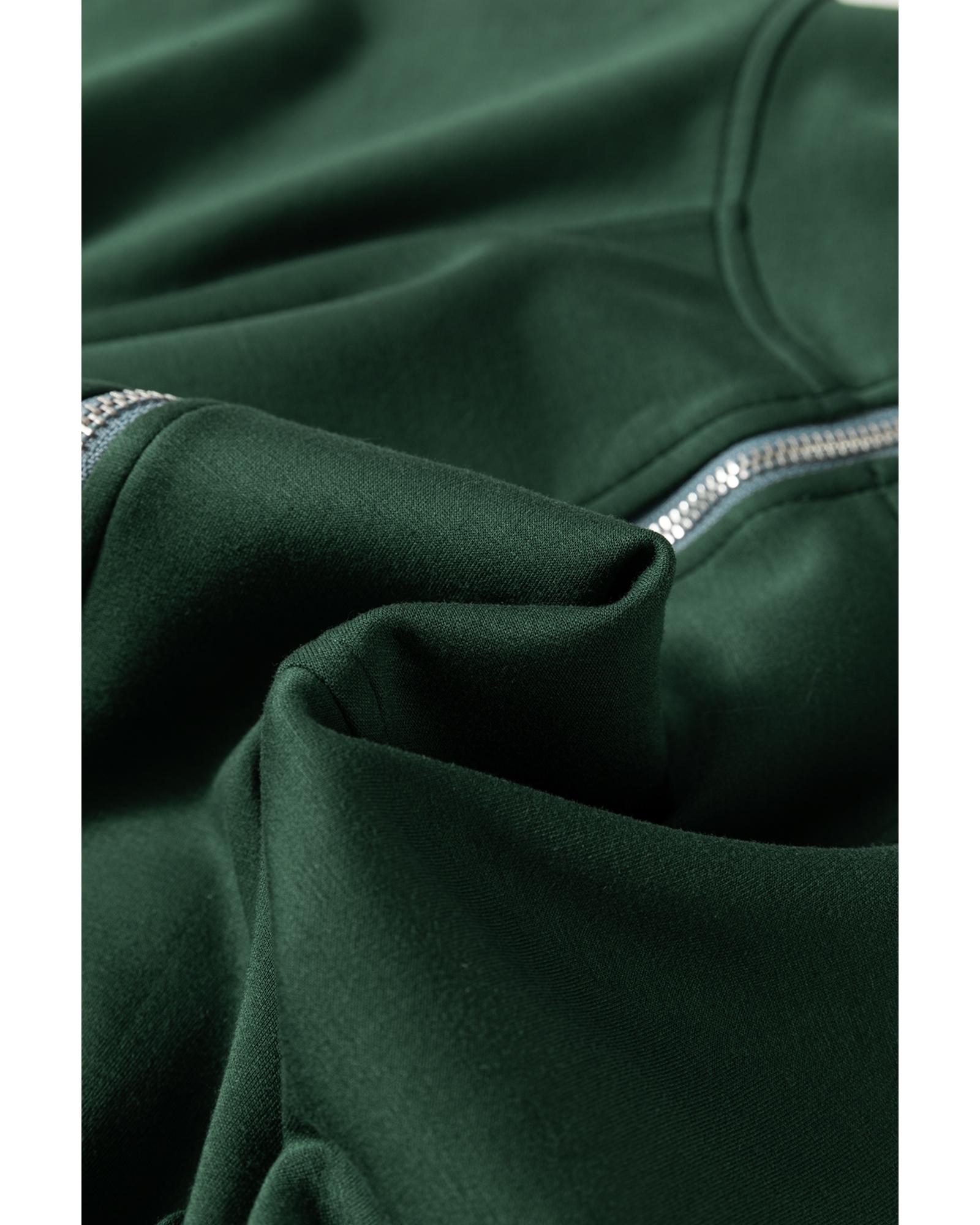 Blackish Green Collared Half Zip French Terry Knit Drawstring Casual Romper – S