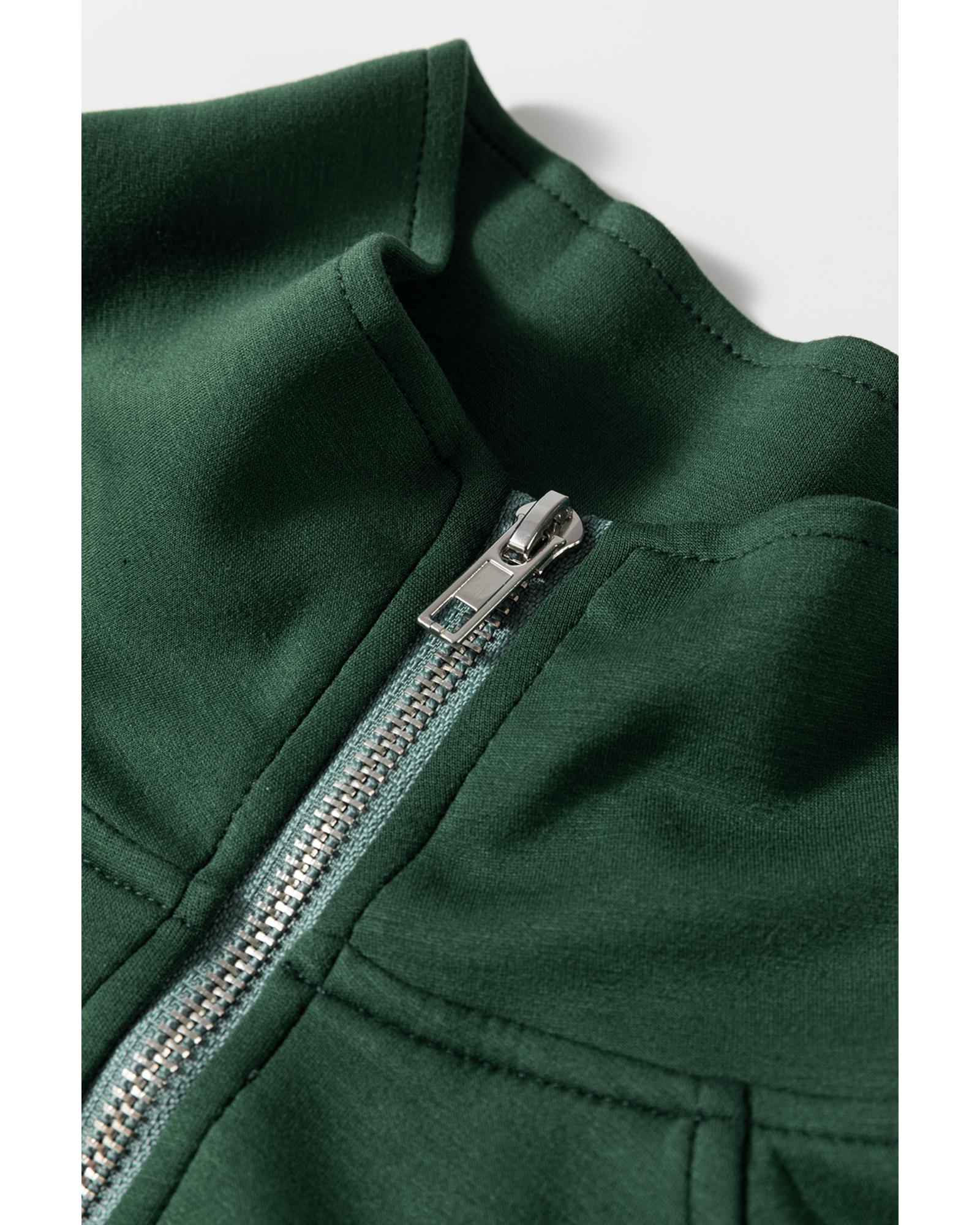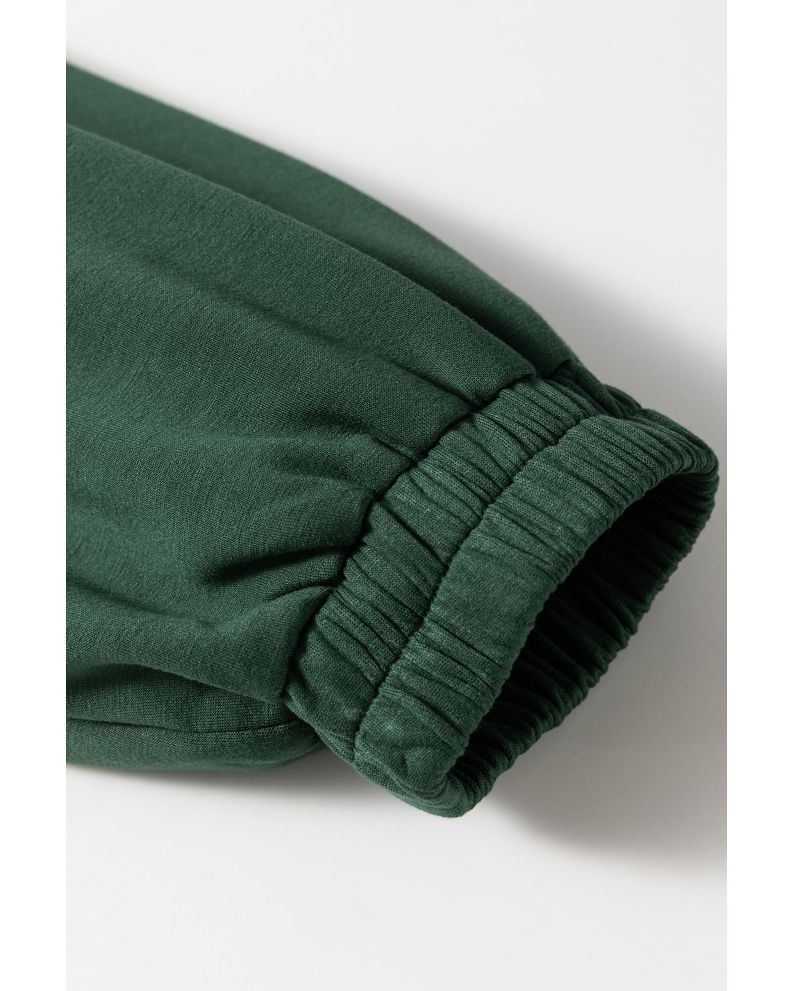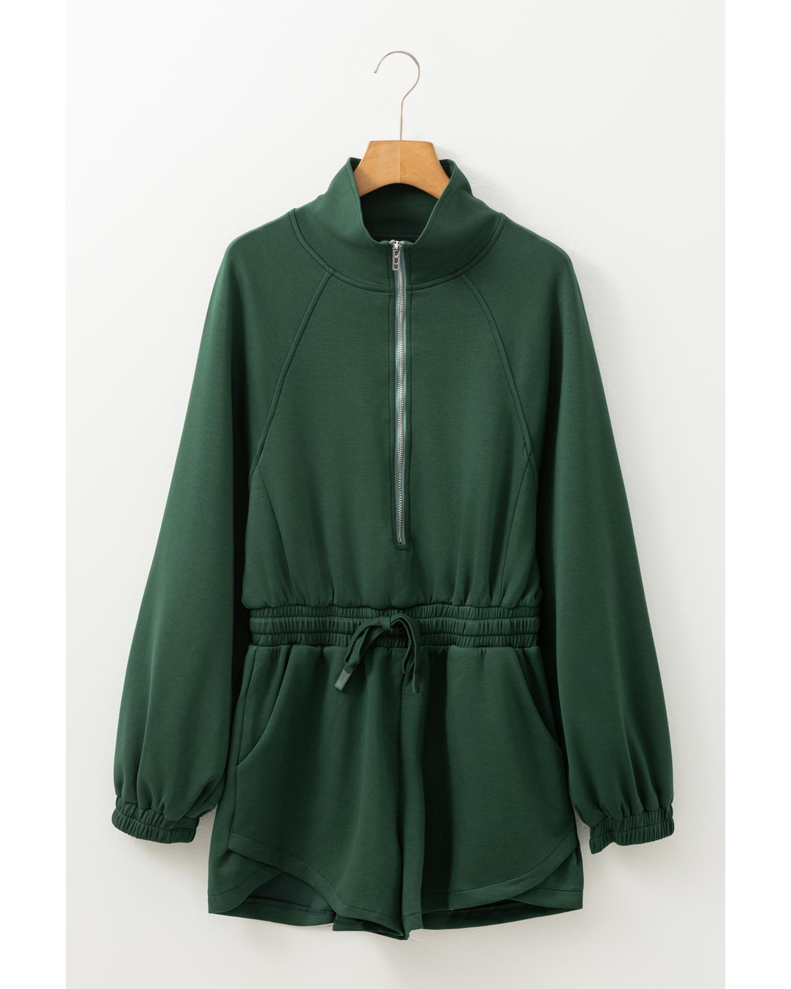 Blackish Green Collared Half Zip French Terry Knit Drawstring Casual Romper – XL