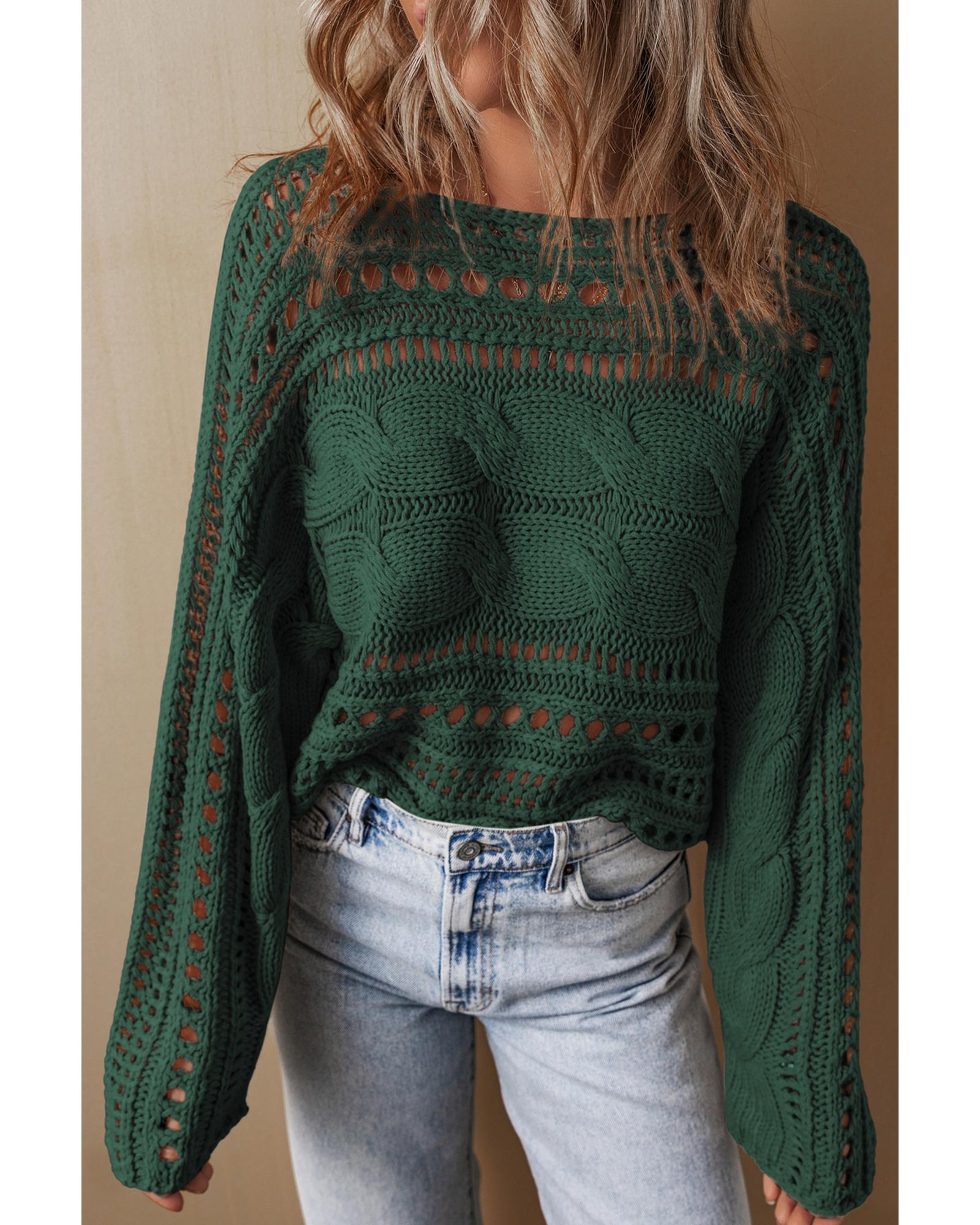 Blackish Green Hollow-out Cable Knit Cropped Sweater – L