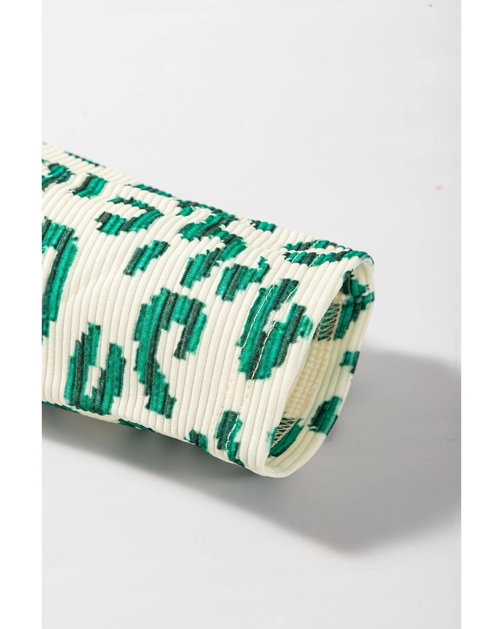 - Blackish Green Leopard Print Mock Neck Puff Sleeve Top