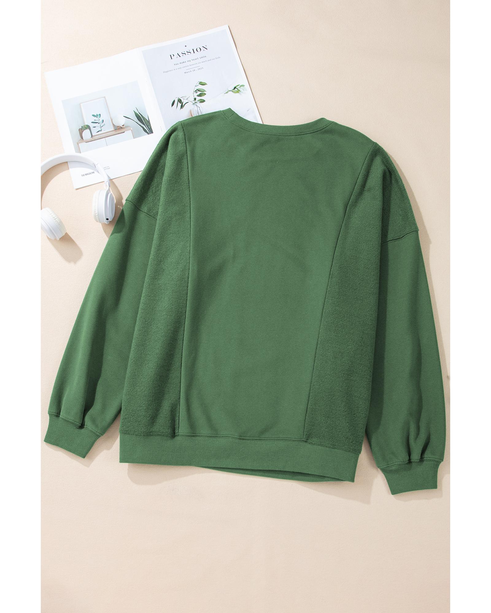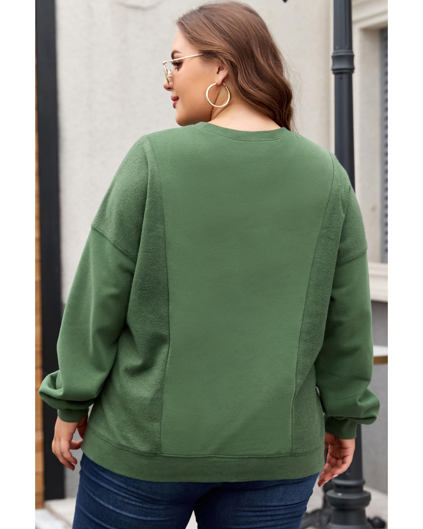 Blackish Green Loose Patchwork Crewneck Plus Size Sweatshirt – 1X