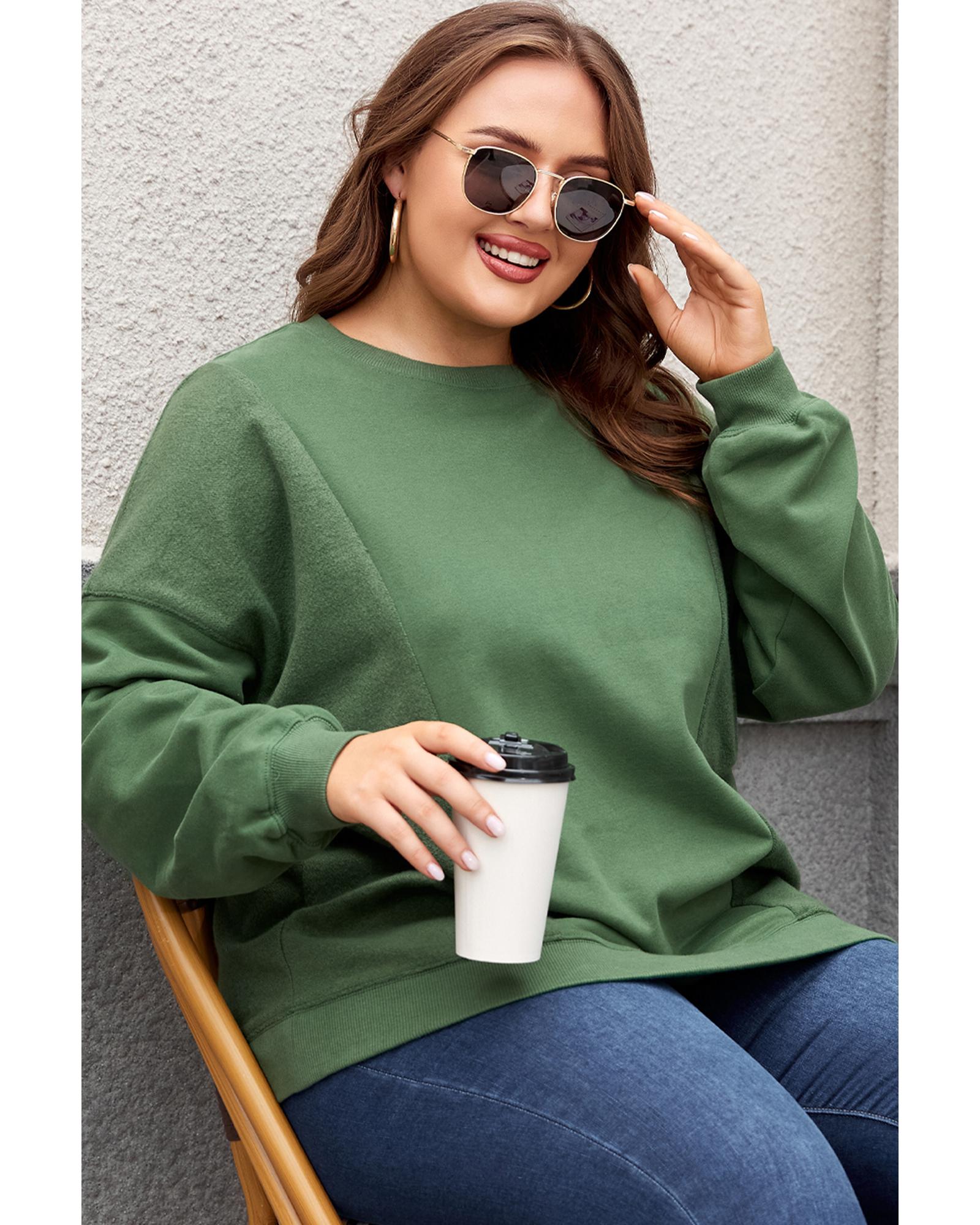 Blackish Green Loose Patchwork Crewneck Plus Size Sweatshirt – 3X