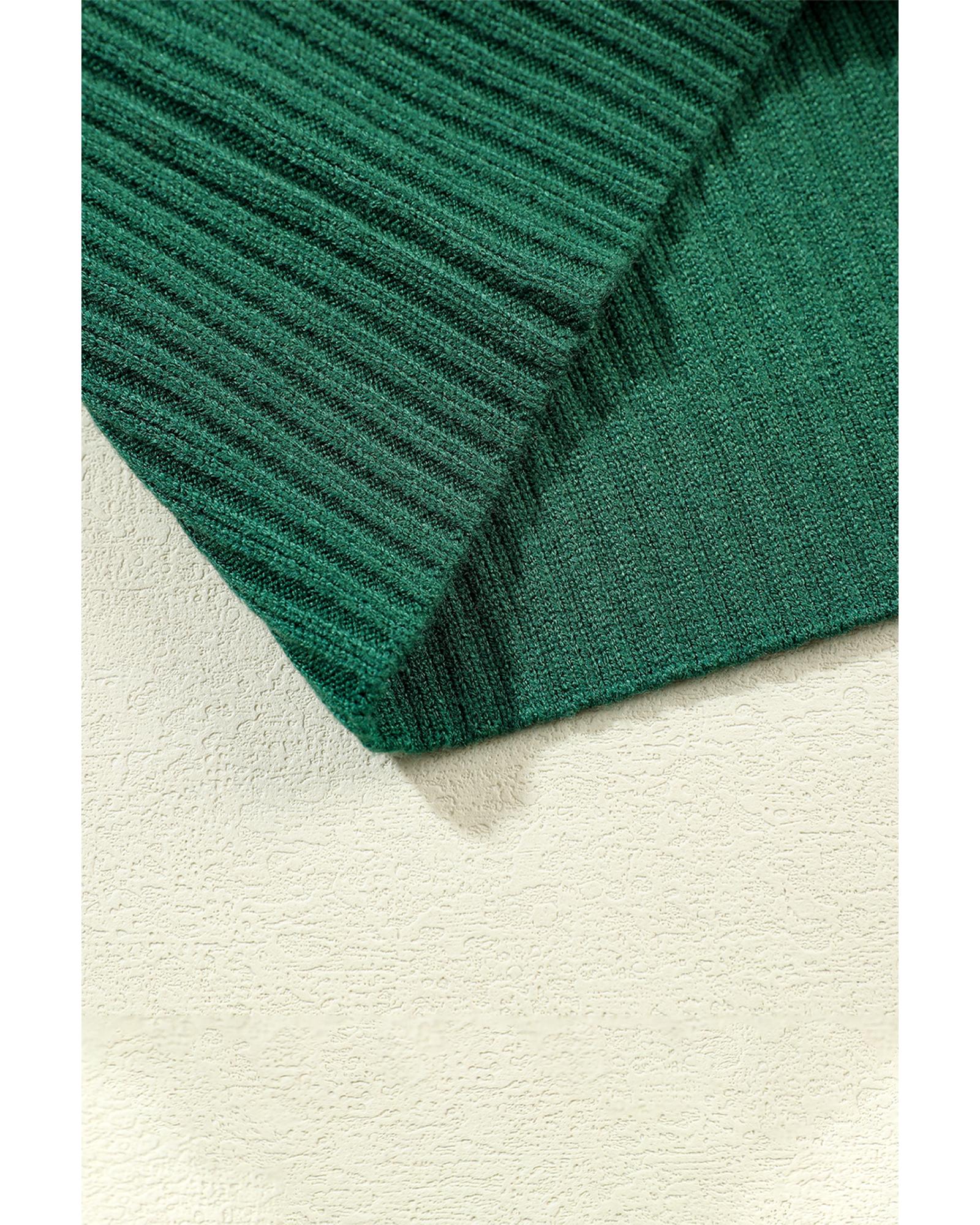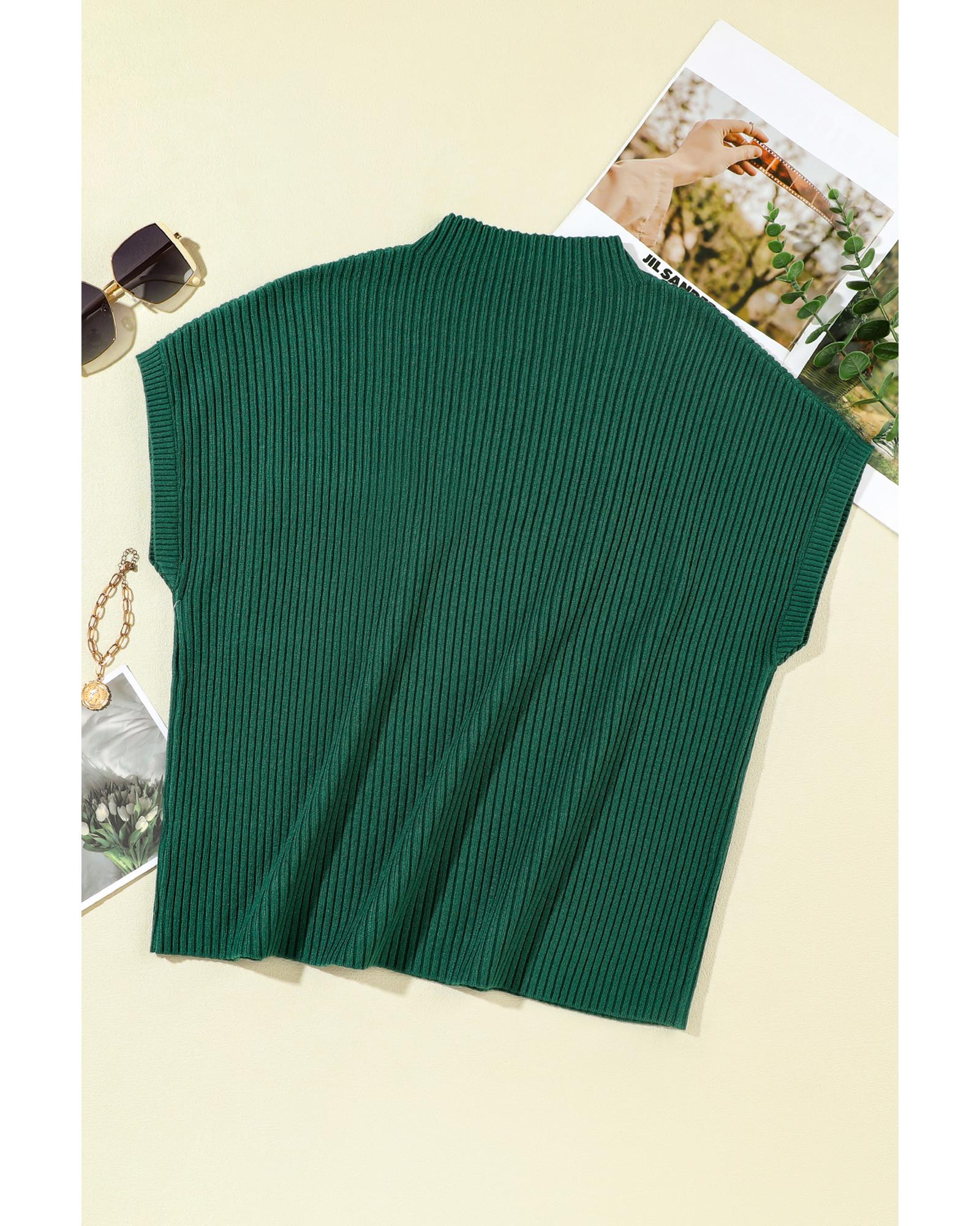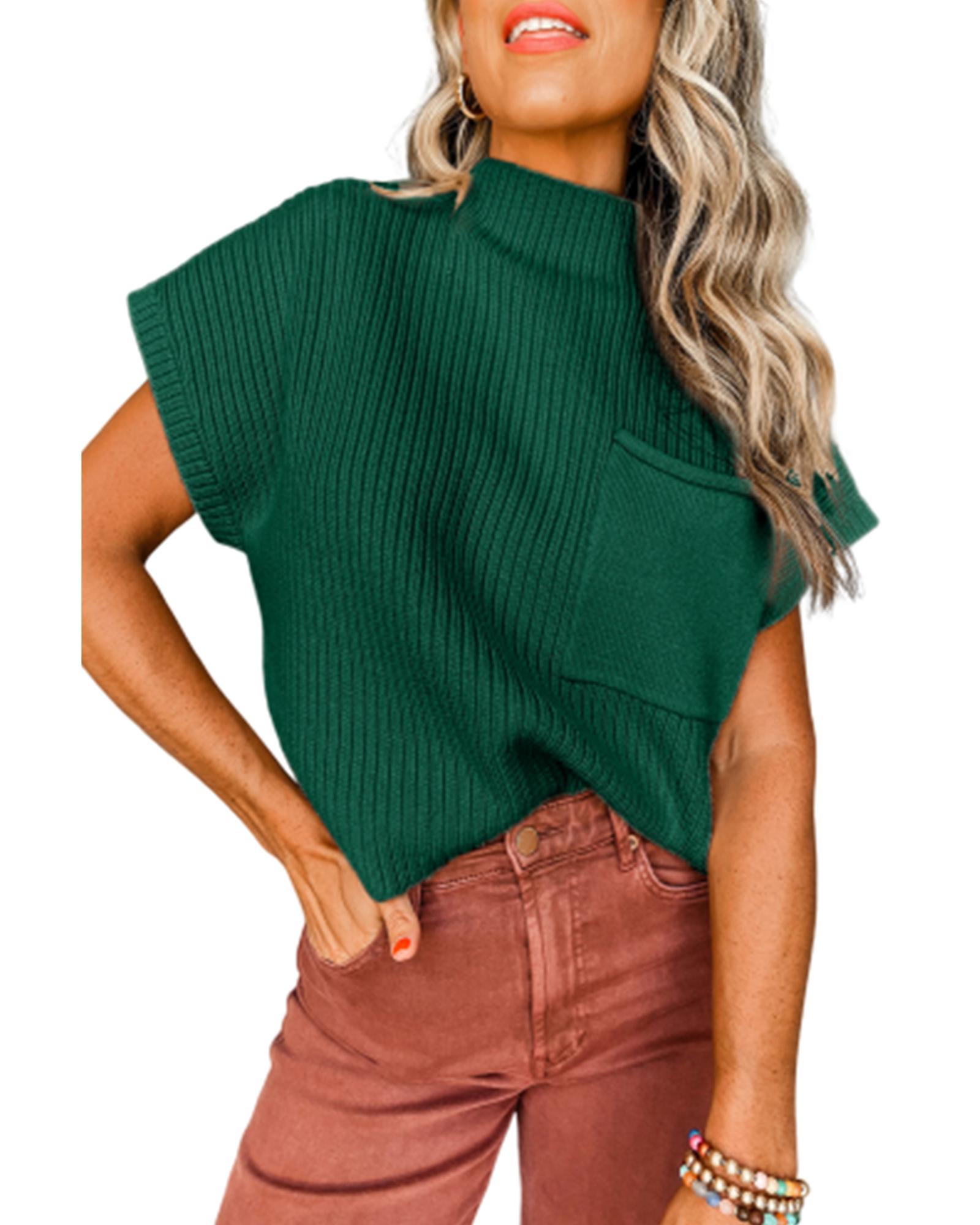 Blackish Green Patch Pocket Ribbed Knit Short Sleeve Sweater – L