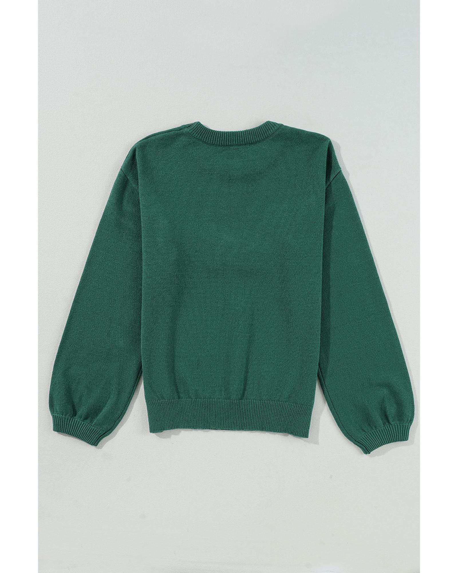 Blackish Green Pearl Beaded Merry Casual Sweater – 2XL