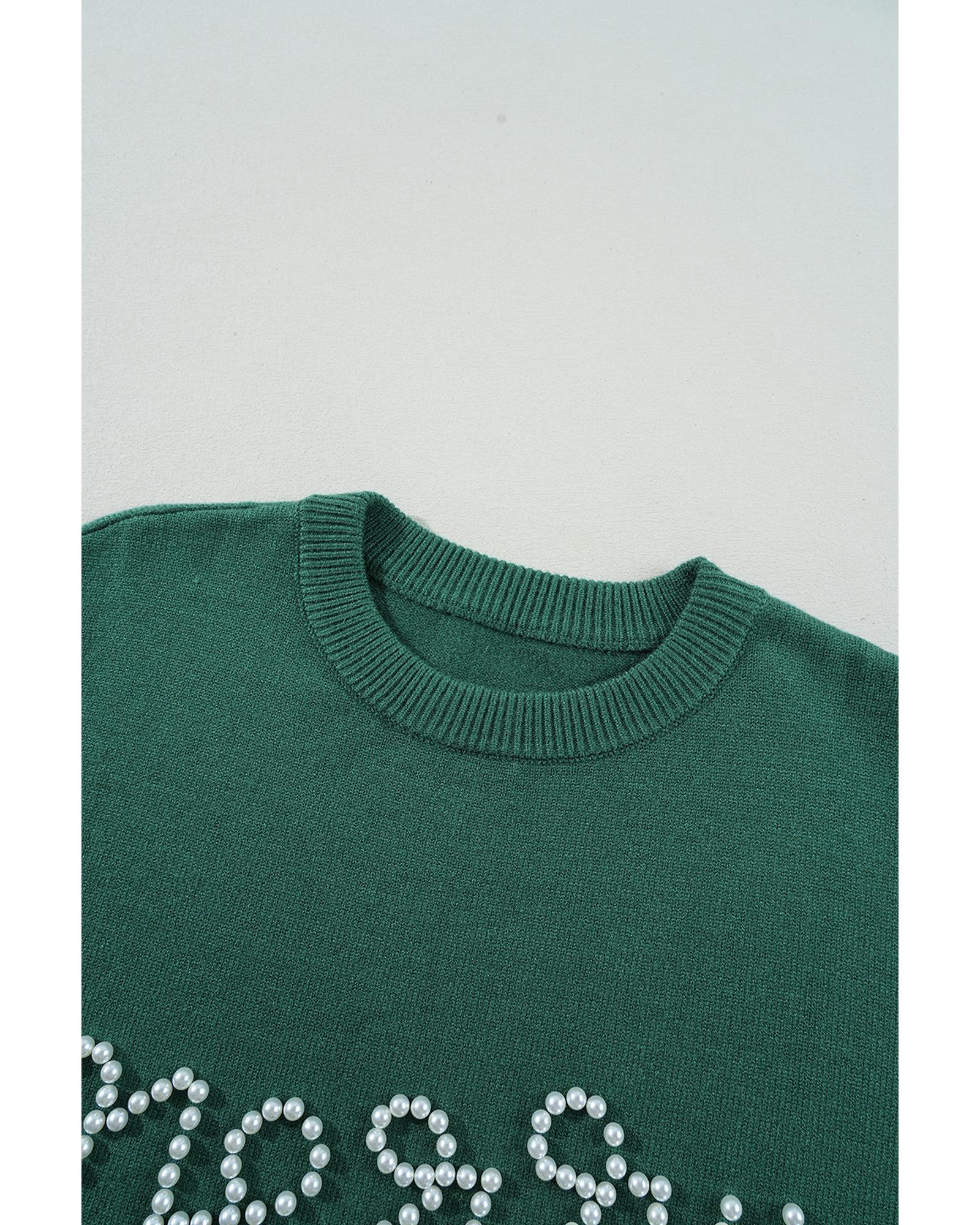 Blackish Green Pearl Beaded Merry Casual Sweater – M