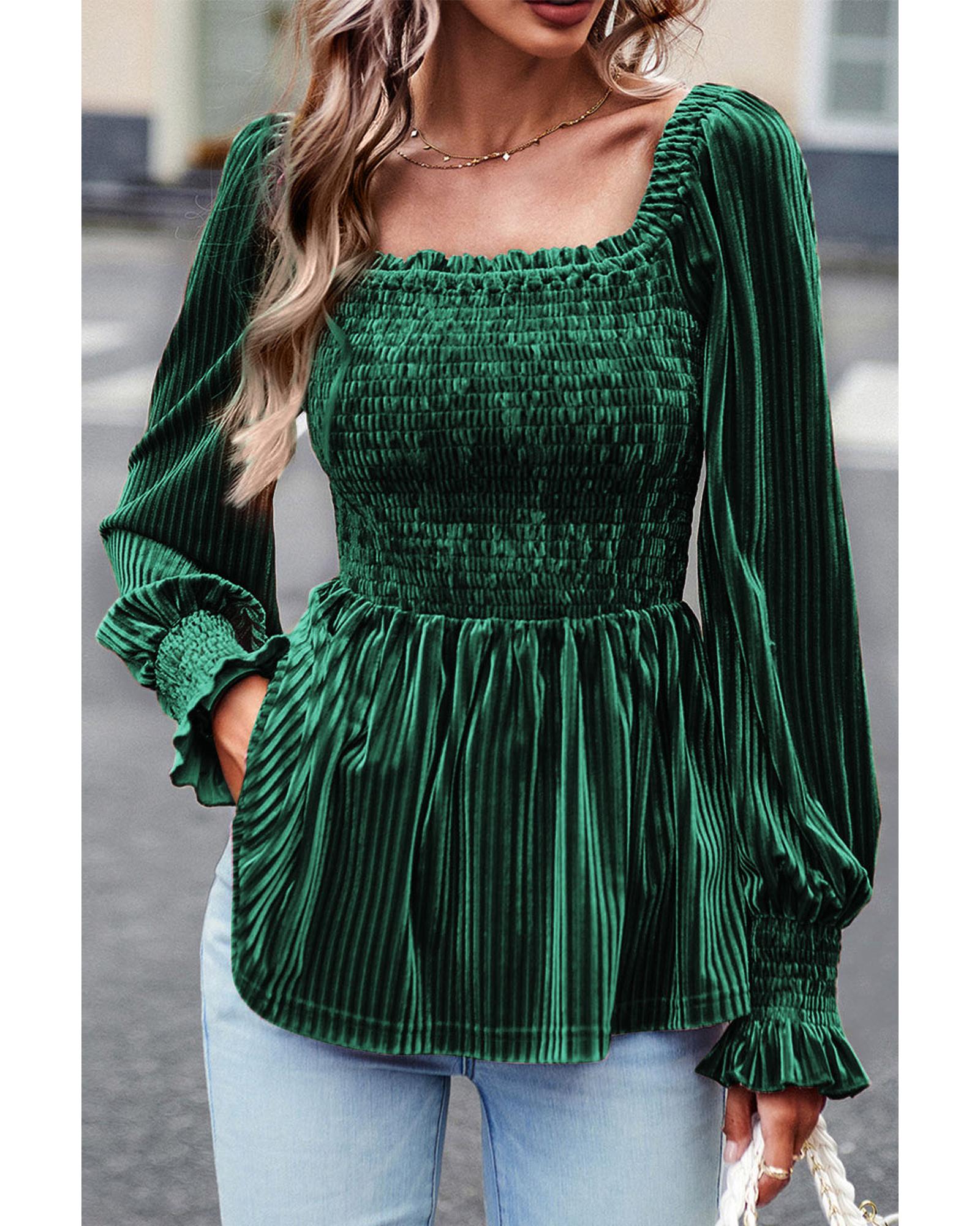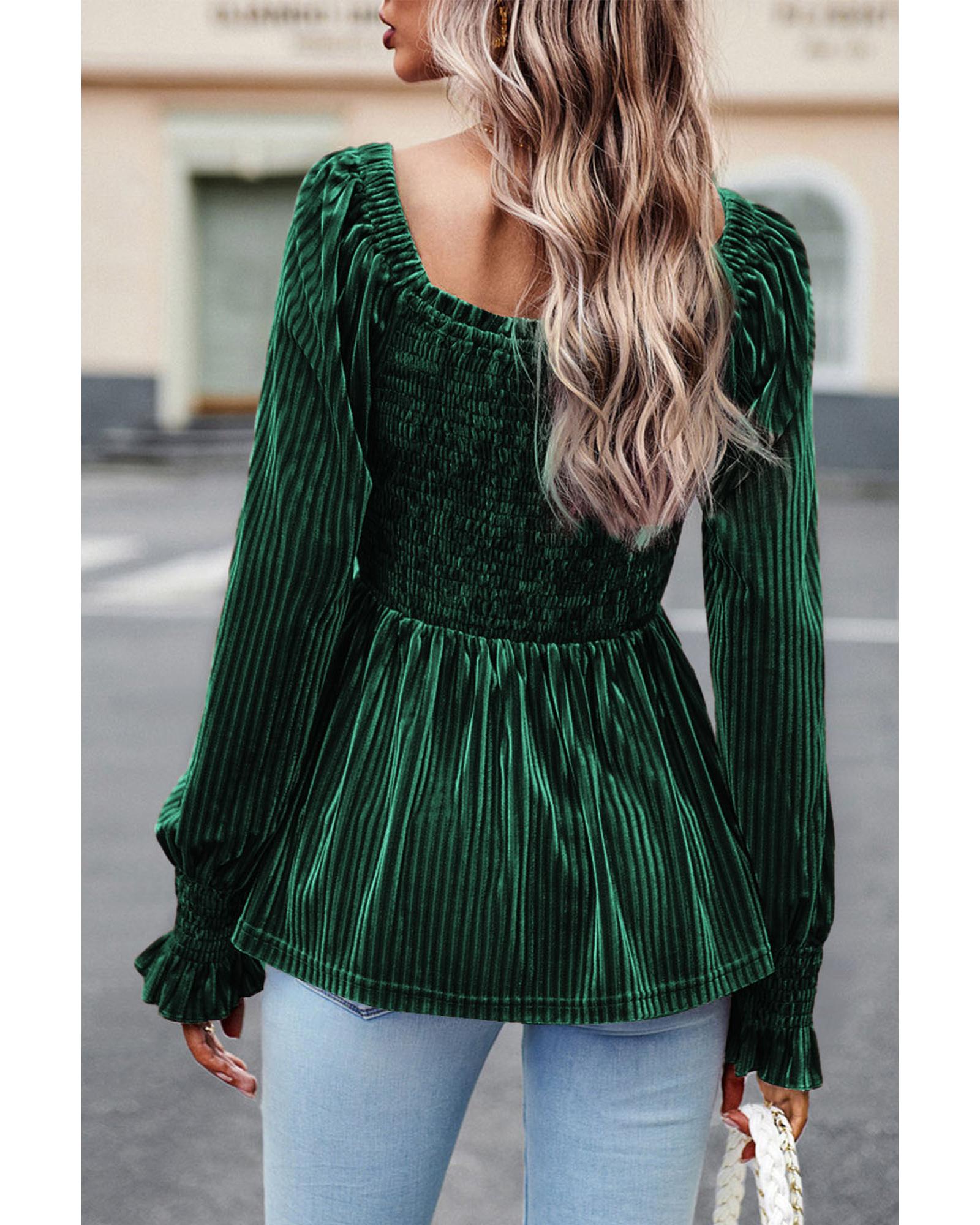 Blackish Green Smocked Ribbed Velvet Babydoll Top – XL