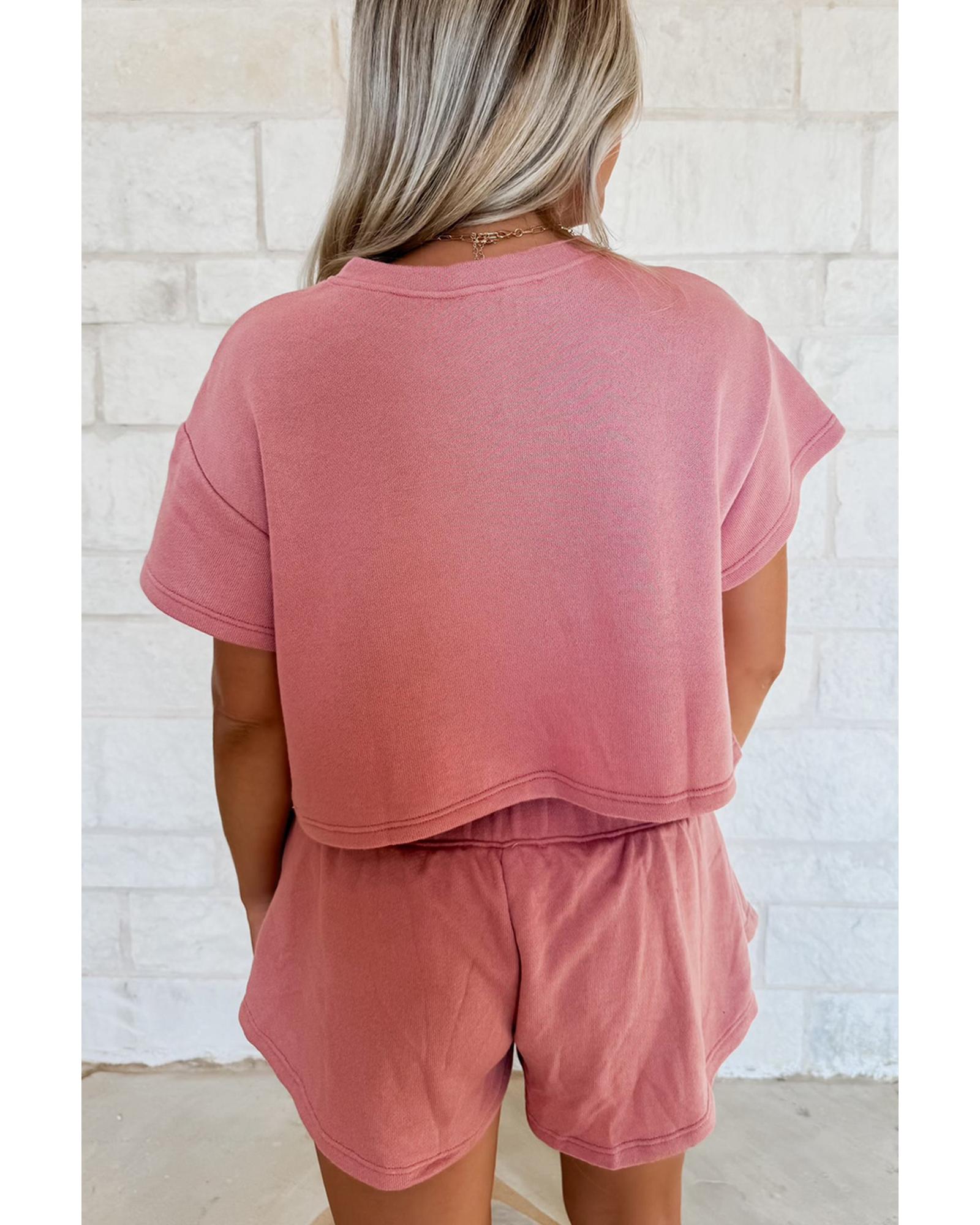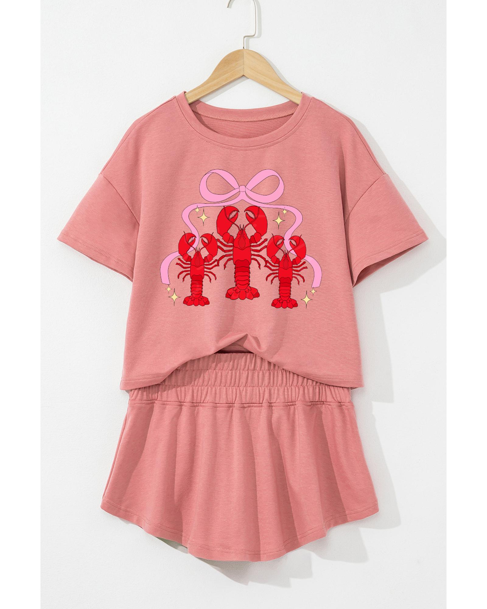 Blossom Bow Crawfish Print T Shirt and High Waist Ruffle Skorts Set – L