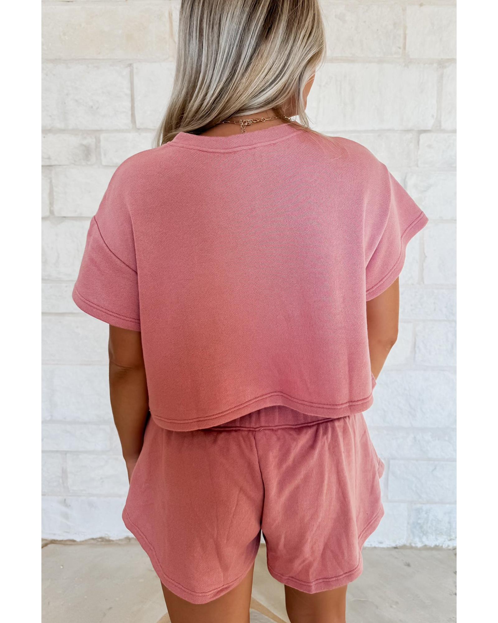 Casual Corded Knit Long Sleeve Top and High Waist Shorts Set - L